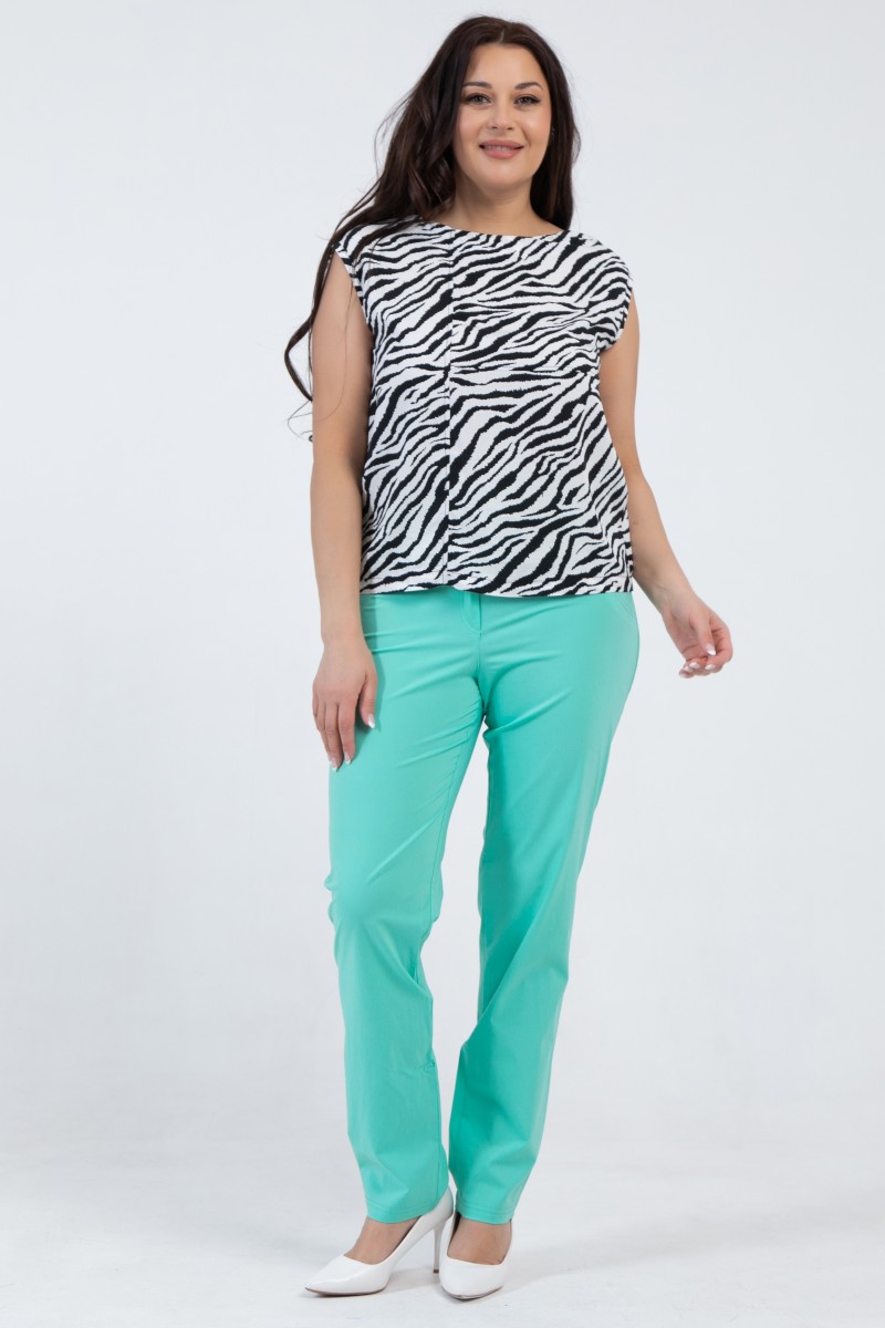 Брюки спортивного стиля с высокой комфортной посадкой. Верх брюк обработан притачным поясом с вложенной эластичной тесьмой-резиной. На переде бочки настроченные отделочной строчкой и имитация застежки «гульфик» задняя часть с кокетками и клапанами. Швы притачивания бочков «гульфик» края клапанов шов притачивания кокеток боковые швы настрочены двойной отделочной строчкой.