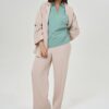 Брюки женские свободного кроя по передней половинке защипы и наклоный карман в боковом шве. Пояс притачной с резинкой по спинке. Застежка на молнии с гульфиком и выметанной петлей с пуговицей на поясе.