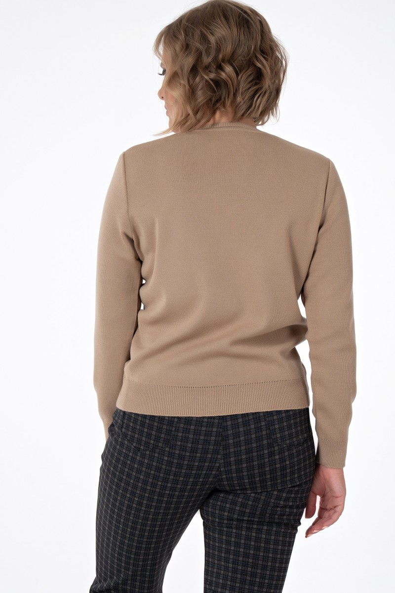Этот джемпер станет основой гардероба благодаря универсальному прямому силуэту и изысканному V-образному вырезу. Глубокая линия декольте визуально удлиняет шею и создает женственный образ. Прямой крой не сковывает движения и подходит для любого типа фигуры.Длинные рукава и классический силуэт делают джемпер идеальным компаньоном для деловых встреч в сочетании с прямыми брюками и жакетом. Для casual-образов достаточно дополнить его зауженными брюками или юбкой. Мягкий трикотаж приятен к телу и сохраняет форму после стирки.Нежный бежевый оттенок легко сочетается с любыми цветами гардероба. Джемпер подойдет для офиса прогулок и неформальных встреч. Качественный трикотаж обеспечивает комфорт в течение всего дня. Классический V-образный вырез позволяет носить украшения или дополнять образ шарфами. Универсальная вещь для создания стильных образов в любое время года.