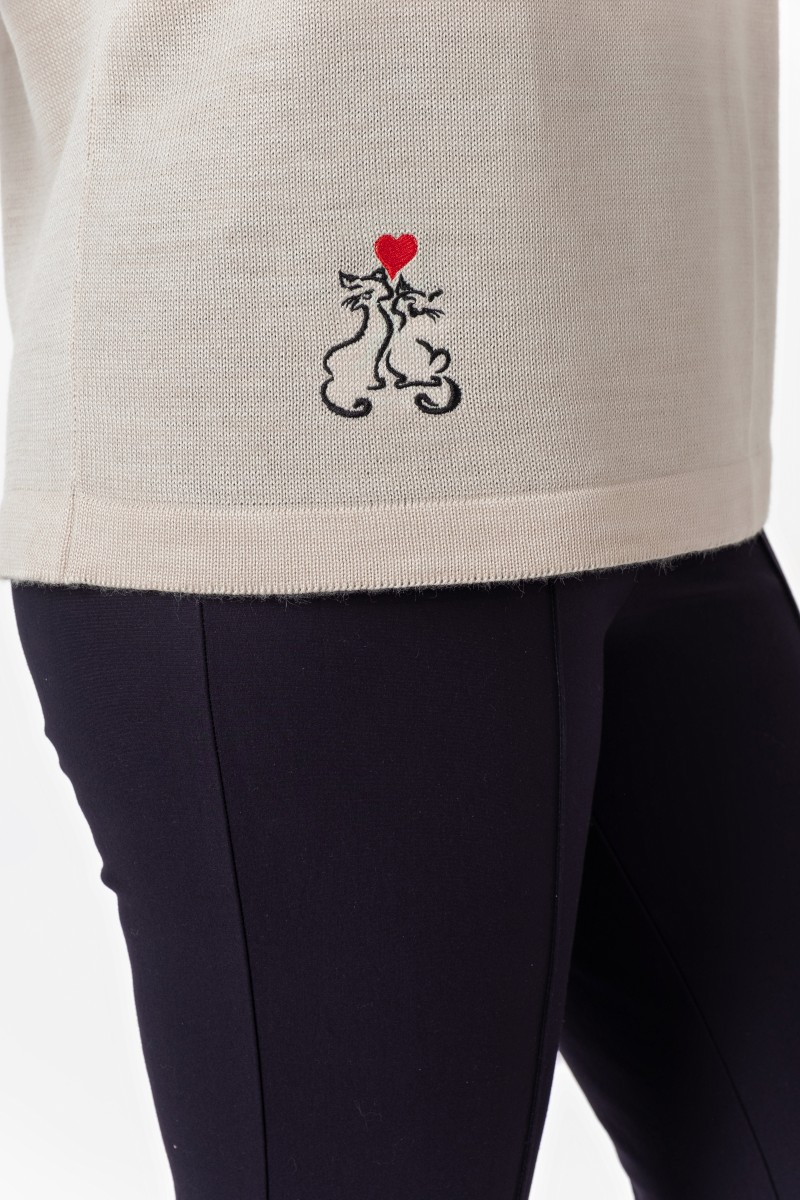 Этот джемпер воплощает философию спокойной элегантности – когда не нужно кричать о стиле достаточно просто его иметь. Бежевый оттенок работает как идеальный нейтральный фон для любых экспериментов с цветом и фактурами. Прямой силуэт не сковывает движения и подходит разным типам фигуры создавая непринужденную женственность без лишней театральности.Рукава три четверти с аккуратными отворотами – это классический прием который визуально удлиняет руки и добавляет образу особую утонченность. Круглый вырез горловины смягчает линии лица а деликатная вышивка справа становится тонким акцентом не перегружающим общую композицию.Мягкая вязаная фактура создает приятные тактильные ощущения и дарит комфорт в течение всего дня. Джемпер органично впишется в деловой образ с прямыми брюками и жакетом станет основой для casual-лука с зауженными джинсами или создаст элегантную базу для вечернего выхода в сочетании с юбкой. Универсальность этой модели позволяет носить ее в офисе на деловых встречах прогулках или в путеш