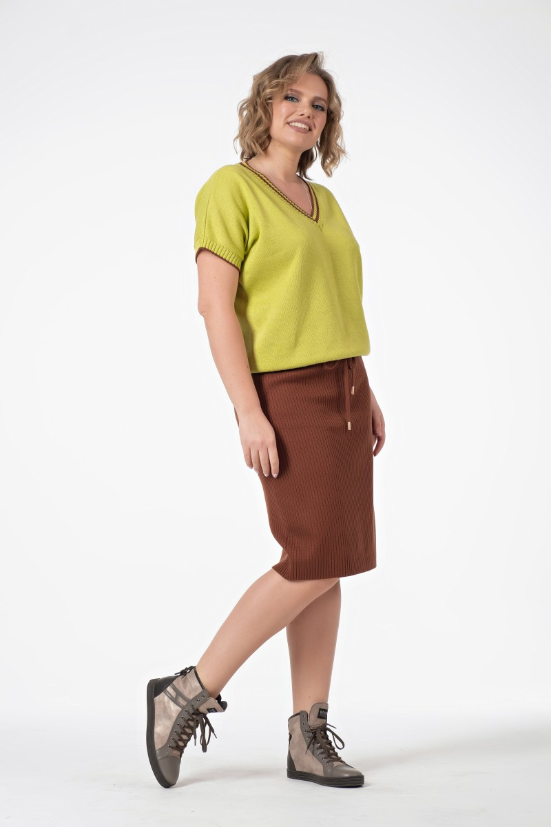Джемпер вязаный с V-вырезом и короткими рукавами