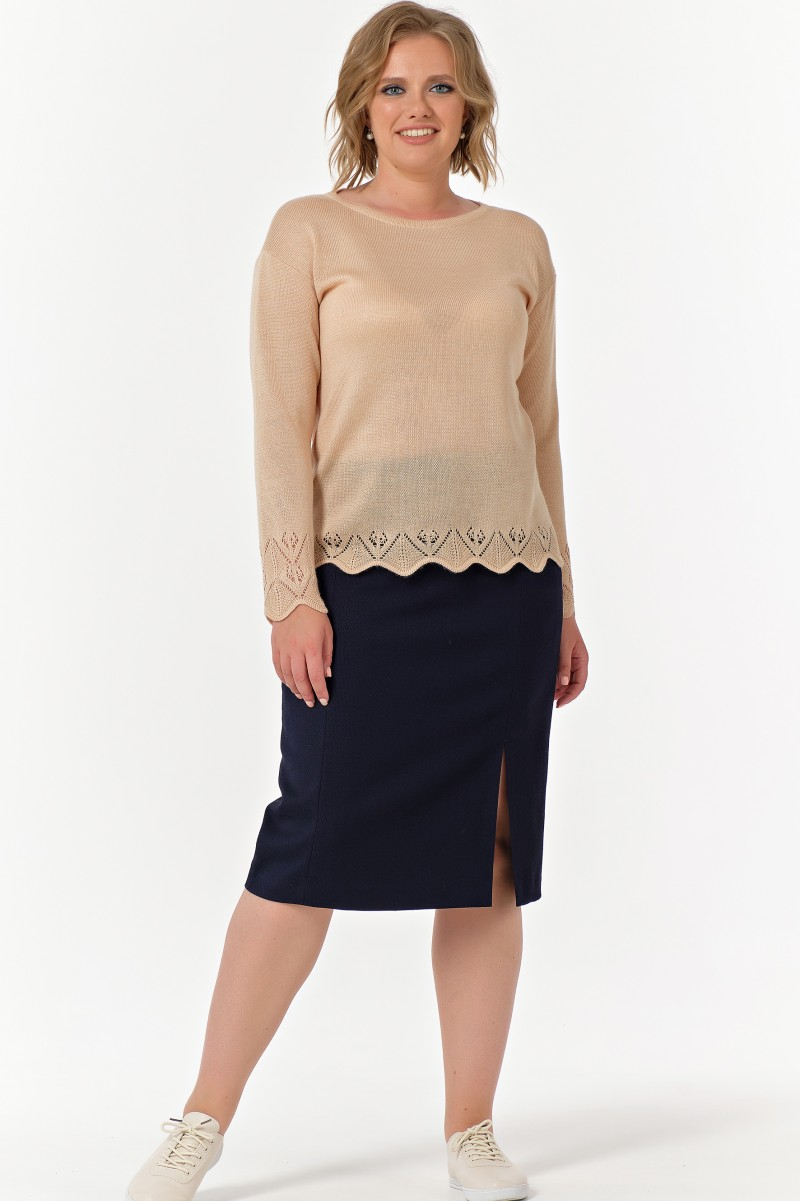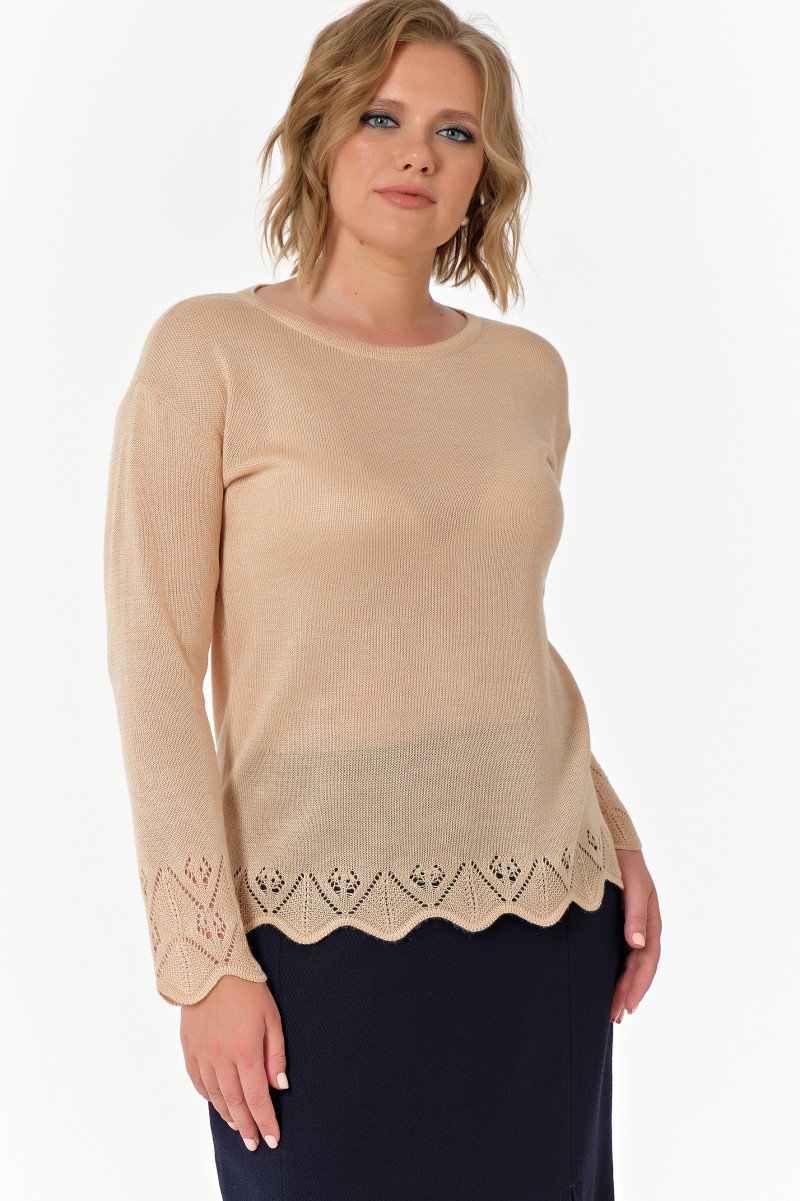 Этот джемпер станет основой гардероба благодаря продуманному дизайну и комфорту. Прямой силуэт не стесняет движений и подходит любому типу фигуры. Длинные рукава с деликатным членением выше локтя создают интересную геометрию образа. Главная изюминка модели – ажурная отделка по низу изделия и рукавов которая превращает базовую вещь в элегантную деталь гардероба. Круглый вырез горловины аккуратно обработан для долговечности и комфорта при носке.Мягкий трикотаж кулирной глади приятен к телу и сохраняет форму после стирки. Нейтральный оттенок легко сочетается с любыми вещами в гардеробе.Для офиса комбинируйте с прямыми брюками и жакетом. На прогулку наденьте с зауженными джинсами и кроссовками. Вечером дополните образ юбкой-карандаш и лодочками. Джемпер одинаково уместен на деловой встрече и дружеских посиделках. Практичное решение для путешествий благодаря универсальности и комфорту материала.