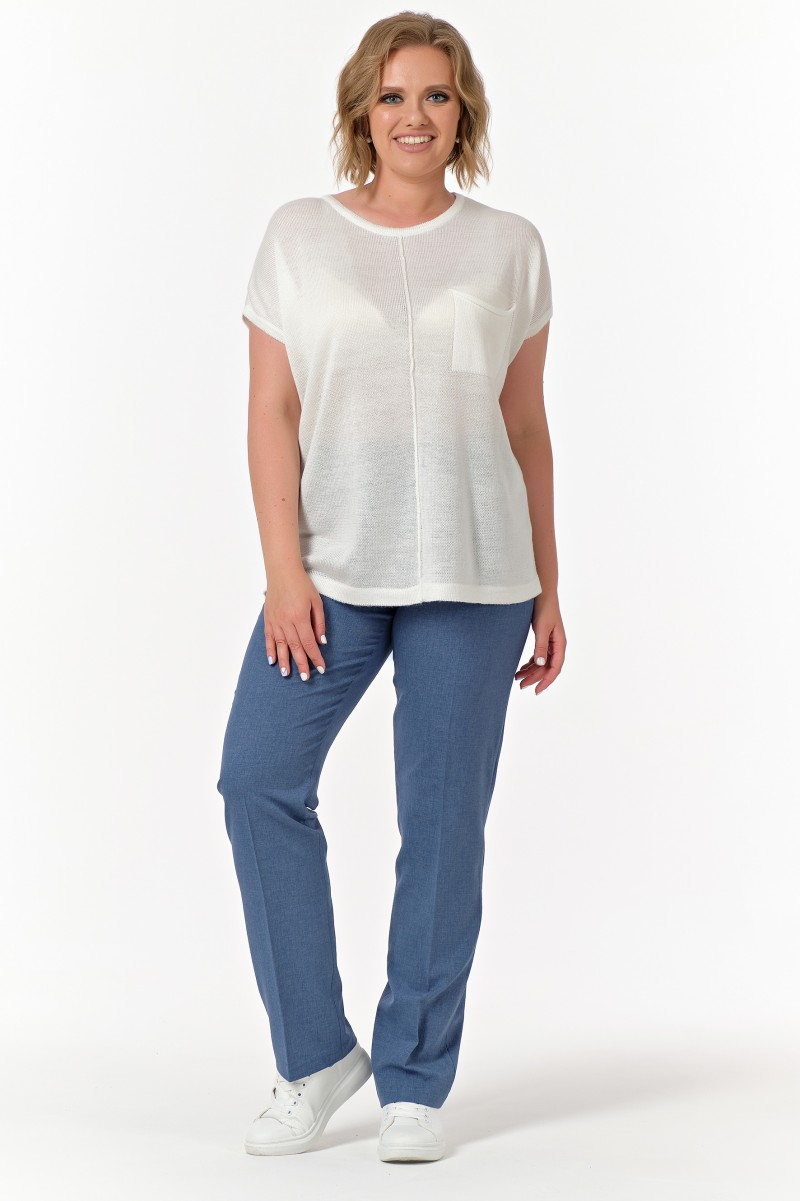 Этот белый джемпер станет основой гардероба для тех кто ценит комфорт без компромиссов со стилем. Прямой силуэт создает непринужденный образ который одинаково уместен в офисе и на встрече с друзьями. Короткие рукава делают модель идеальной для межсезонья и прохладных летних вечеров.Главная изюминка – декоративный шов который проходит по центру и визуально вытягивает силуэт. На левой стороне расположен вязаный карман куда поместится телефон или ключи. Круглая горловина мягко обрамляет шею создавая классический силуэт.Трикотажное полотно приятно к телу и позволяет коже дышать. Такой джемпер прекрасно сочетается с прямыми брюками для делового образа или с зауженными джинсами для прогулки по городу. Добавьте жакет – и получится образ для важной встречи. Наденьте с палаццо – создастите расслабленный weekend look.Модель подходит для офиса путешествий прогулок и неформальных встреч. Универсальный белый цвет сочетается с любыми оттенками в гардеробе.
