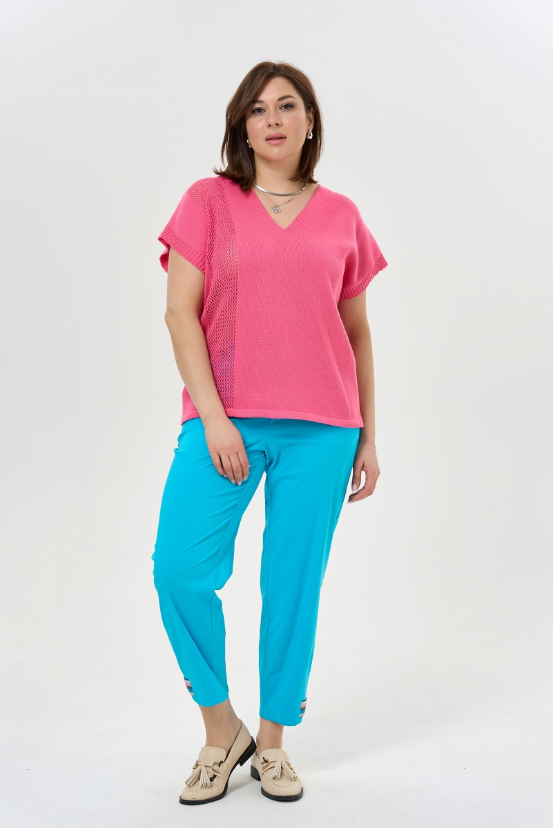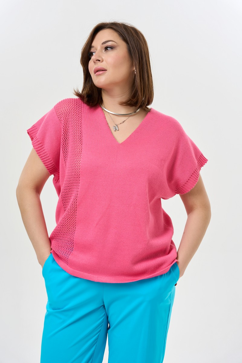 Этот джемпер из нежного трикотажа станет основой гардероба для тех кто ценит комфорт без компромиссов стилю. Прямой силуэт не сковывает движения и подходит разным типам фигуры. V-образный вырез визуально вытягивает силуэт и создает элегантную линию декольте.Яркий розовый оттенок освежает образ и поднимает настроение в серые будни. Мягкий трикотаж приятен к телу и не теряет форму после стирки. Универсальная модель работает в деловых луках с прямыми брюками и жакетом легко вписывается в casual-образы с джинсами.Для офисных встреч сочетается с брюками средней посадки и минималистичными украшениями. В выходные дни создает расслабленный образ с широкими брюками-бананами и кроссовками. Вечерний лук получается с зауженными брюками и изящными аксессуарами.Джемпер подходит для путешествий благодаря практичности трикотажа и универсальности кроя. Один предмет гардероба для множества поводов и настроений.