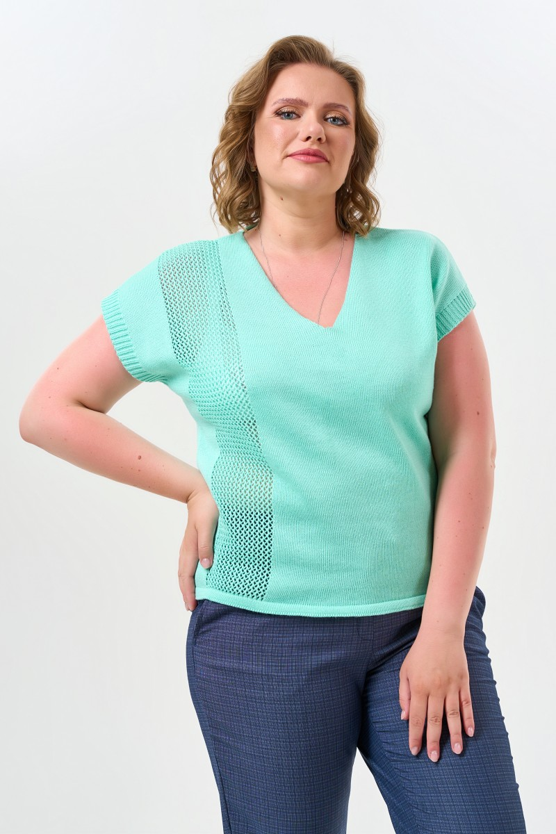 Мятный джемпер с V-образным вырезом станет основой множества образов в гардеробе современной женщины. Прямой силуэт не сковывает движения и подходит любому типу фигуры. Глубина выреза продумана так чтобы создать элегантную линию декольте без излишней открытости.Нежный мятный оттенок освежает лицо и прекрасно сочетается с базовыми цветами гардероба. Гладкая вязка из качественного трикотажа приятна к телу и долго сохраняет первоначальный вид. Для офиса комбинируйте джемпер с деловыми прямыми брюками и жакетом. На прогулку наденьте свободные брюки-бананы с поясом на резинке. Для вечернего выхода подойдут зауженные брюки которые создадут более изысканный силуэт.Этот джемпер одинаково уместен на деловой встрече и во время путешествия. Универсальность кроя и благородный цвет делают его незаменимым спутником активной городской жизни. Мягкий трикотаж обеспечивает комфорт на протяжении всего дня а лаконичный дизайн позволяет экспериментировать с аксессуарами и дополнениями к образу.