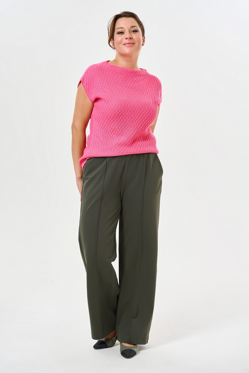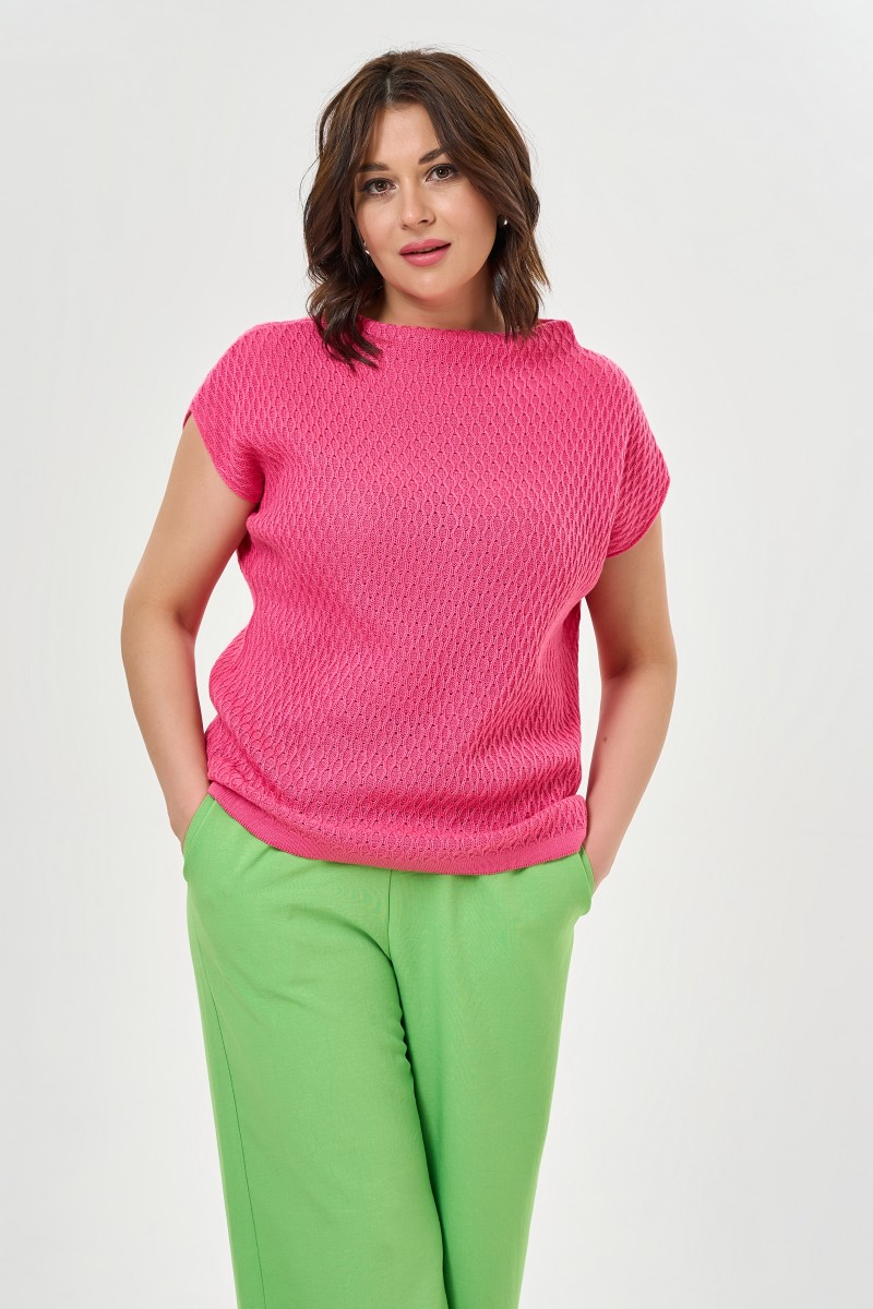 Джемпер с изящной полустойкой создает ощущение уверенности и комфорта одновременно. Фактура паутинка добавляет образу легкости и воздушности. Прямой силуэт подчеркивает естественные линии фигуры без лишней облегаемости.