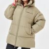 Женский пуховик прямого силуэта с отстегивающимся капюшоном. Основная застежка на молнии. На полочках расположены вертикальные прорезные карманы. Рукава на резинке. Пуховик удлинен по спинке. Наполнитель биопух.