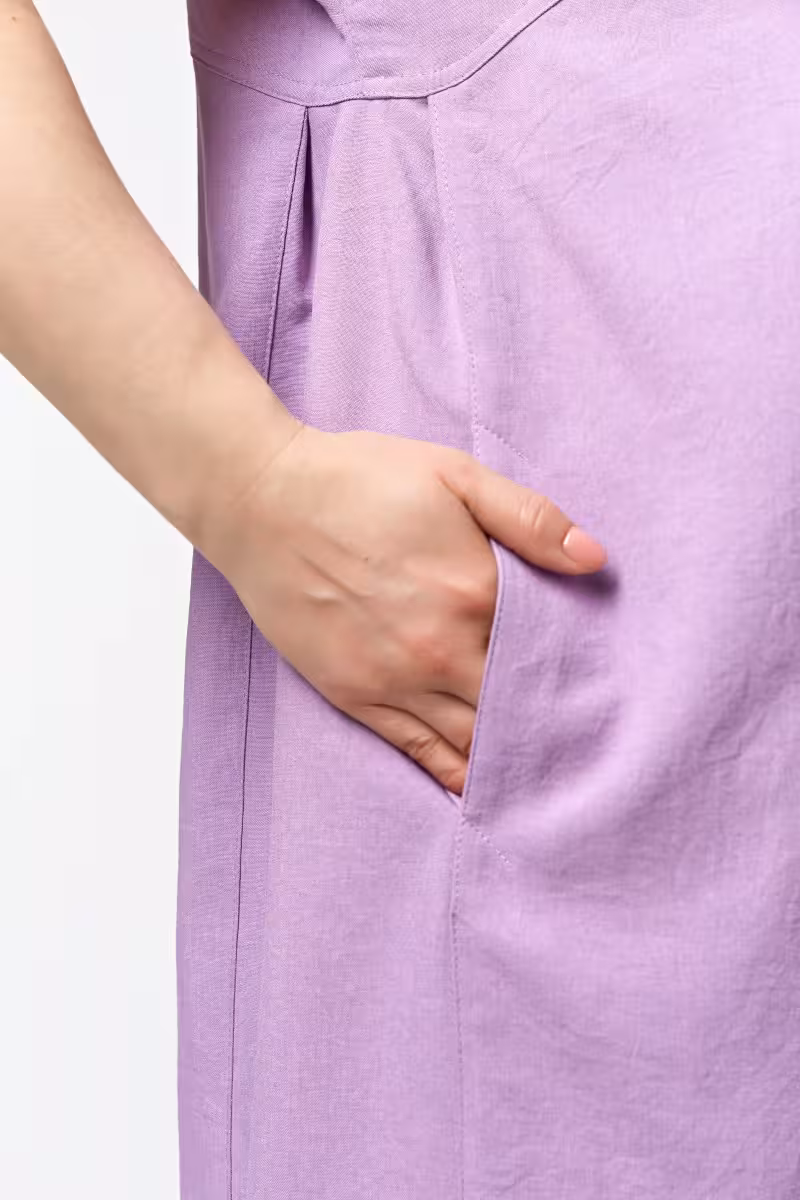 Платье прямого силуэта с карманами сиреневое