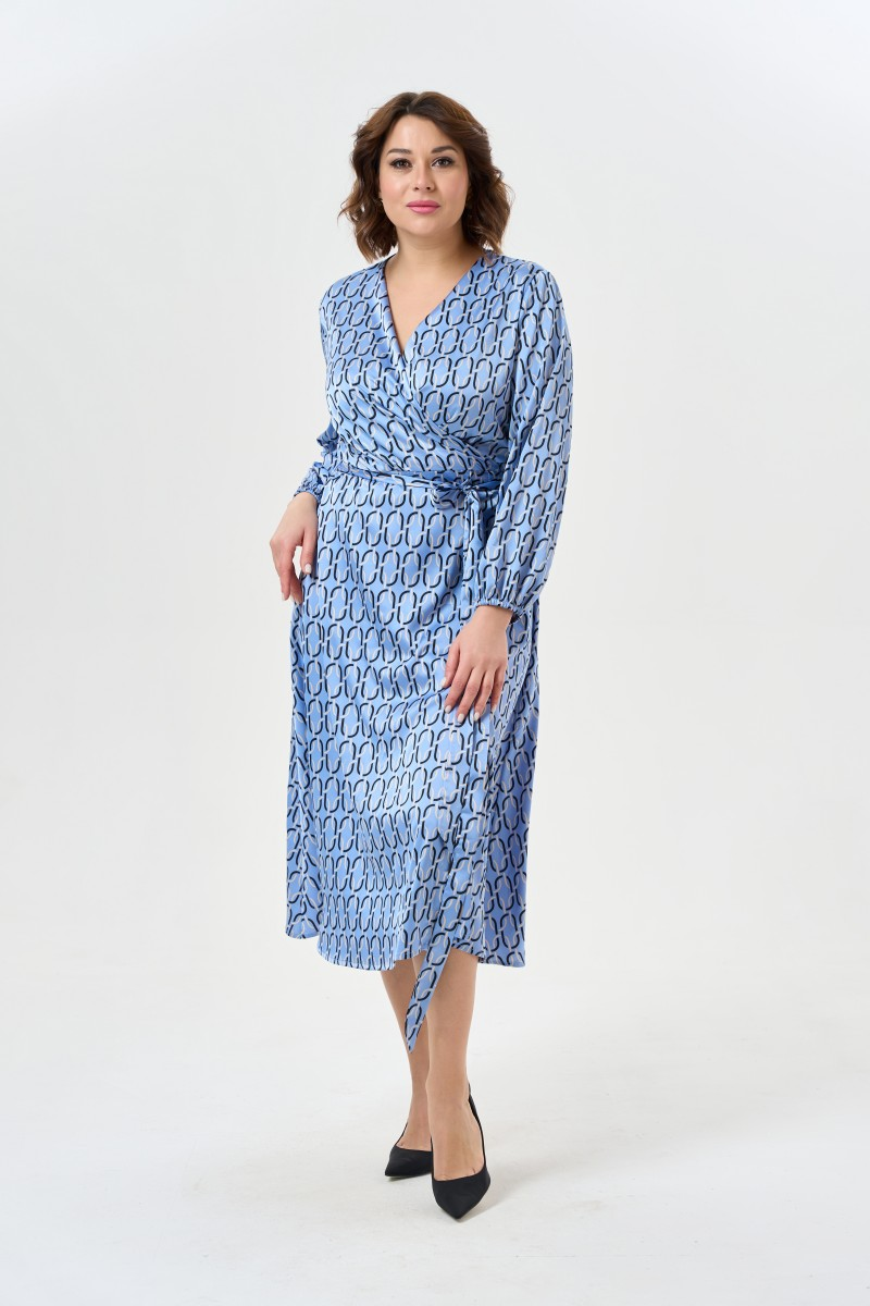 Это платье воплощает классику женственности в современной интерпретации. Силуэт на запах создает идеальные пропорции визуально подчеркивая талию и скрывая особенности фигуры. Пояс завязывающийся чуть выше естественной линии талии позволяет регулировать посадку под настроение дня.Расклешенная юбка струится при ходьбе создавая эффект легкости и грации. Длинные рукава собраны внизу на мягкую резинку что добавляет романтичности образу и защищает от прохладного ветра. V-образный вырез удлиняет шею и открывает зону декольте в элегантной манере.Синий принт делает платье универсальным спутником для праздничных событий. Подходит для семейных торжеств корпоративных вечеринок или романтических свиданий. Качественная ткань держит форму в течение всего дня и комфортна при носке.Сочетается с классическими лодочками для официальных случаев или ботильонами для более современного образа. Размерный ряд учитывает особенности разных типов фигур.