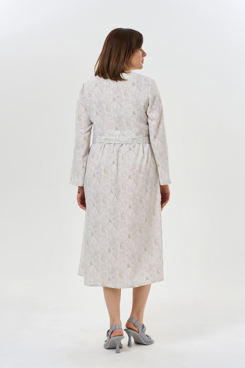 Это платье воплощает философию современной женщины – быть стильной и чувствовать себя комфортно одновременно. Свободный силуэт не сковывает движения позволяя наслаждаться каждым моментом дня. V-образный вырез добавляет нотку элегантности визуально удлиняет шею и подчеркивает женственность.Центральная складка спереди создает интересную игру линий и добавляет структурности образу. Длинные рукава делают платье универсальным для прохладной погоды а детали на спинке придают особый шарм даже самому простому образу.Пояс становится главным помощником в создании силуэта – его можно завязать туго для подчеркивания талии или оставить свободным для максимального комфорта. Натуральный состав ткани обеспечивает приятные тактильные ощущения и позволяет коже дышать.Платье легко трансформируется от офисного образа с жакетом до расслабленного weekend-лука. Подходит для деловых встреч прогулок по городу путешествий и вечерних выходов. Достаточно сменить аксессуары и обувь чтобы получить совершенно новый образ.