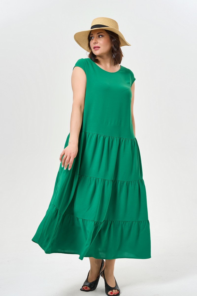 Воздушное платье в сочном зеленом оттенке дарит ощущение легкости и свободы движений. Три романтичных яруса создают игривый силуэт который подчеркивает женственность без лишних акцентов.