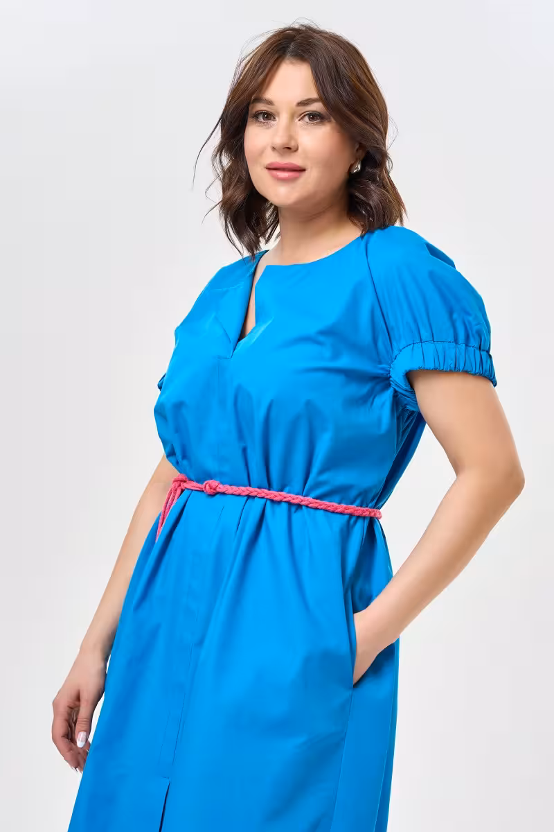 Платье свободного силуэта с поясом и карманами