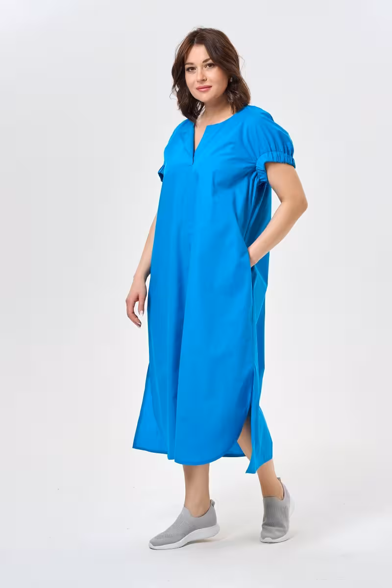 Это платье станет основой гардероба для тех кто ценит комфорт без компромиссов в стиле. Свободный силуэт элегантно обтекает фигуру создавая непринужденный образ. Круглый вырез подчеркивает линию шеи а рукава с мягкими сборками на резинке добавляют женственности. Центральная складка спереди визуально удлиняет силуэт и делает образ более структурированным. Практичные боковые карманы позволяют держать необходимые мелочи под рукой. Разрезы по бокам и спереди обеспечивают свободу движений и добавляют динамики спокойному силуэту. Асимметричный подол спереди создает интересную геометрию и современный вид.Платье идеально подходит для офисных будней в паре с жакетом и классическими туфлями. Для прогулок по городу достаточно добавить кроссовки и легкую сумку. Натуральная ткань приятна к телу и позволяет коже дышать даже в самые насыщенные дни. Деловая встреча или неформальное мероприятие – это платье адаптируется под любую ситуацию.