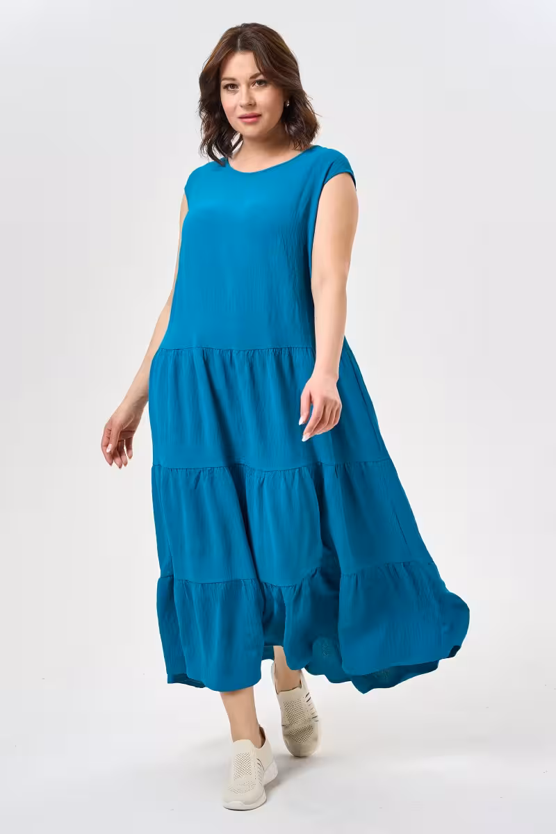 Романтика многослойности воплощена в этом платье через три яруса каждый из которых добавляет объема и движения силуэту. Свободный крой не сковывает фигуру позволяя чувствовать себя естественно в любой ситуации. Рукава кимоно создают мягкие линии и элегантную непринужденность характерную для восточного стиля.Круглый вырез красиво обрамляет зону декольте а специальная отделка по горловине и проймам придает изделию завершенный вид. Длина макси делает образ более торжественным и женственным. Натуральная ткань приятна к телу и обеспечивает комфорт на весь день.Это платье станет основой для создания множества образов. С сандалиями и соломенной шляпой получится идеальный look для прогулок по городу или отдыха на природе. Дополнив образ изящными украшениями и каблуками можно отправиться на романтический ужин или вечеринку с друзьями. Платье подходит для путешествий благодаря удобному крою и практичности.