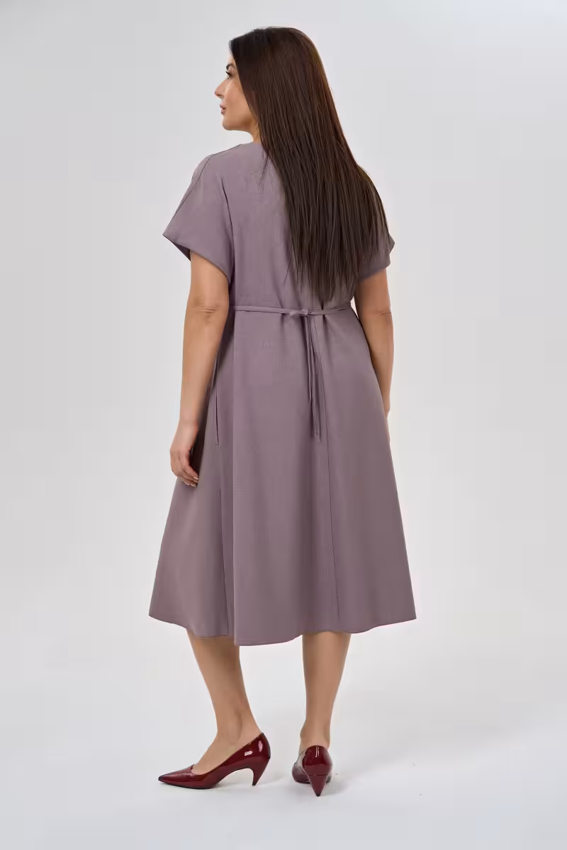 Платье с поясом и короткими рукавами лилового
