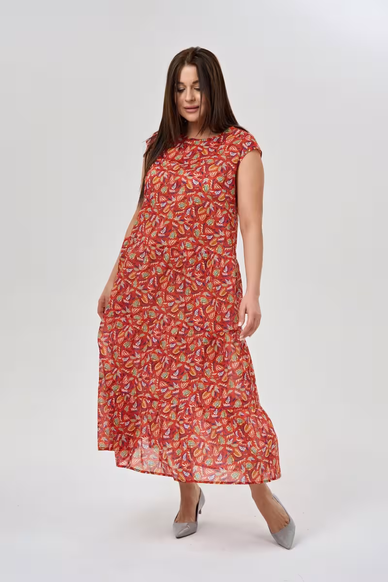 Это платье воплощает философию медленной моды – никуда не спешить наслаждаться каждым моментом летнего дня. Свободный силуэт не сковывает движения позволяя чувствовать себя естественно в любой ситуации. Три яруса создают красивую игру объемов – каждый слой мягко струится добавляя образу романтической легкости.Широкие рукава в стиле кимоно придают модели особый шарм и этническую нотку. Круглый вырез горловины подчеркивает изящество шеи а удобная посадка делает платье универсальным выбором для разных типов фигуры. Натуральные ткани обеспечивают комфорт даже в самые жаркие дни.Модель идеально вписывается в летний гардероб современной женщины. Подойдет для прогулок по городу встреч с друзьями в кафе поездок на дачу или путешествий. С сандалиями создает расслабленный casual-образ а с элегантными туфлями трансформируется в наряд для романтического ужина. Платье легко упаковывается в чемодан и практически не мнется что делает его незаменимым спутником в отпуске.