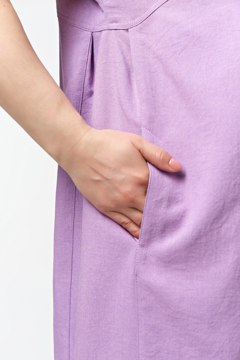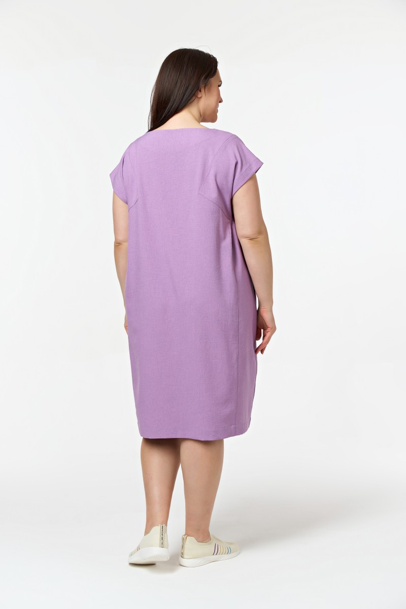 Платье женское прямого силуэта длиной ниже колена. Рукава спущенные. Горловина овальная. По спинке и переду фигурные кокетки. От кокеток идут вертикальные рельефы в которыхобработаны карманы.