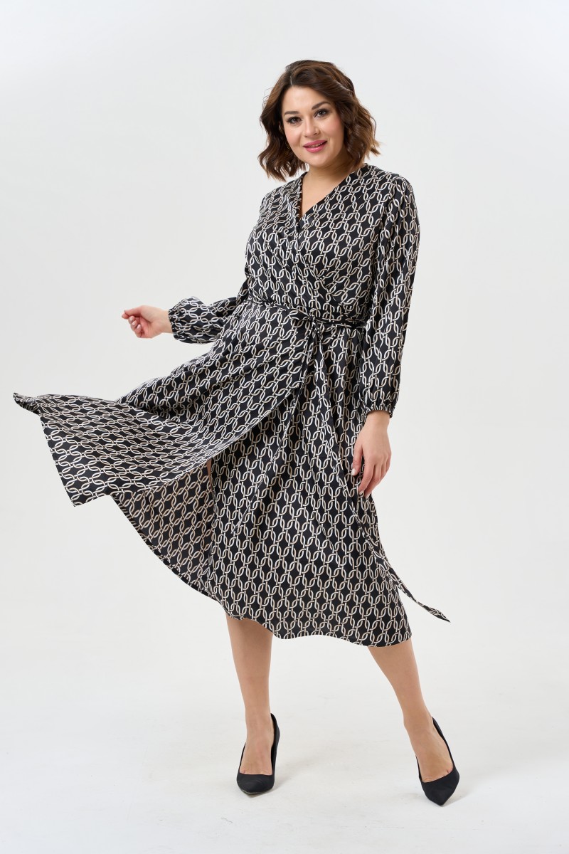 Красивое платье на запах с интересным принтом и пышной юбкой.