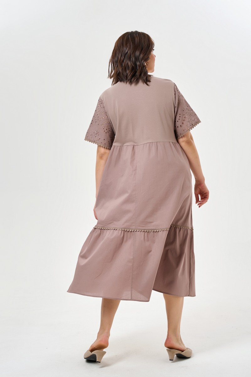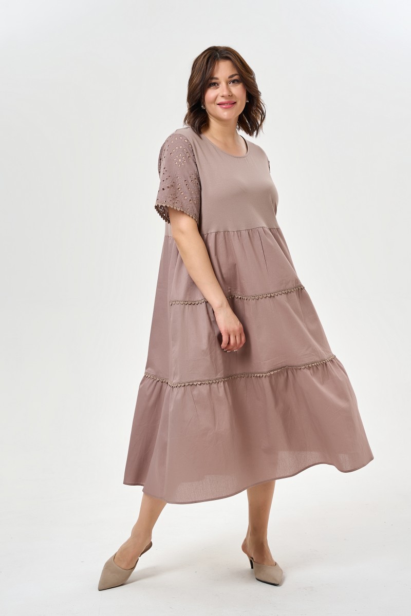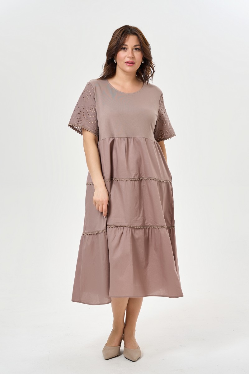 Летнее платье свободного силуэта из хлопка в оттенке какао.