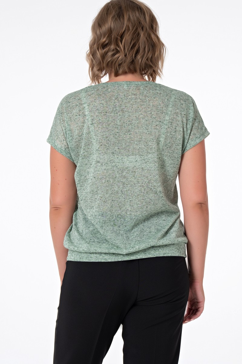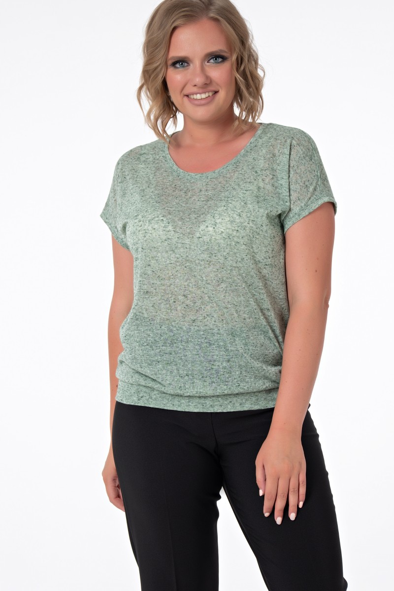 Очаровательная блуза свободного силуэта выполнена из однотонного меланжевого трикотажа. Модель со спущенным рукавом подойдет к любому жакету и поможет создать эффектный и стильный образ .