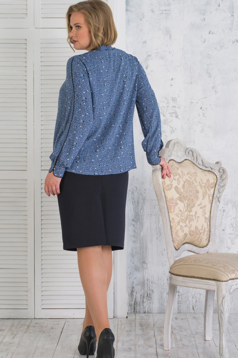 креп камушки синиеБлузка из креповой ткани прямого силуэта без воротника с V-образным вырезом по горловине переда горловина обработана обтачкой• Перед – с нагрудными выточками выходящими из бокового шва с мягкой складкой.• Спинка – со средним