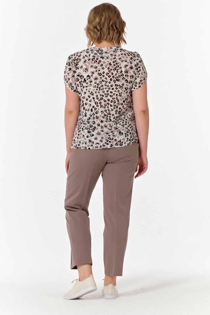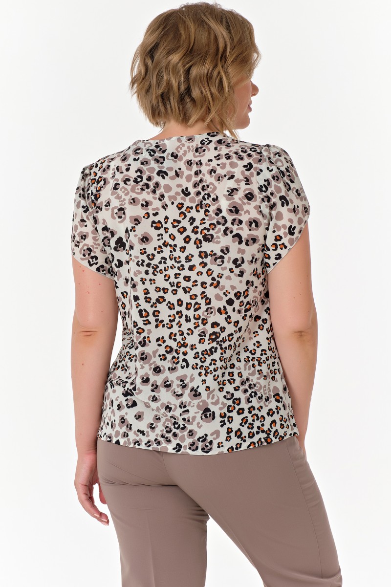 Блузка женская полуприлегающего силуэта. Спинка целая без среднего шва. Перед целый с нагрудными вытачками из бокового шва. Рукава короткие из двух частей наложенных в виде лепестков друг на друга с 4-мя защипами.