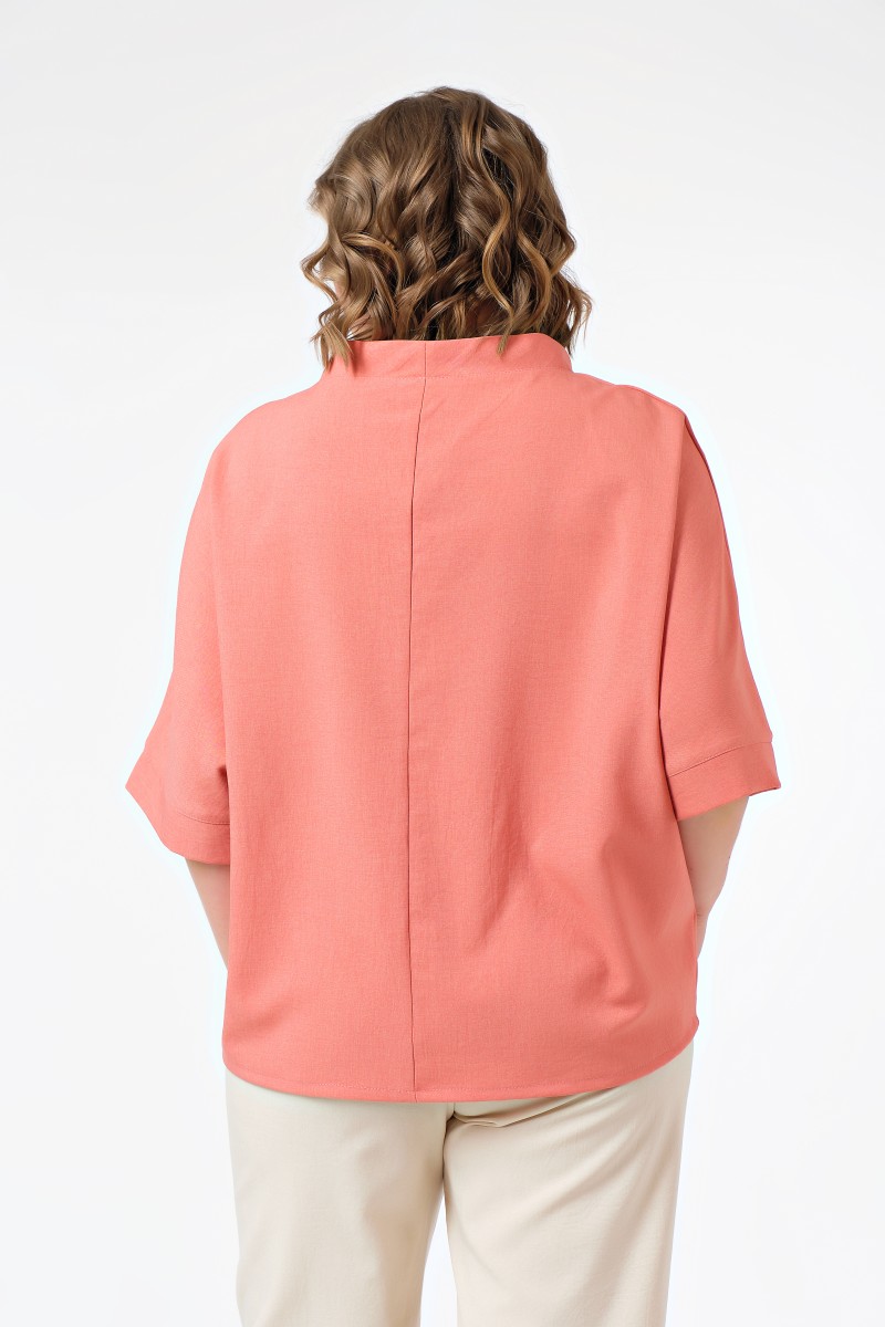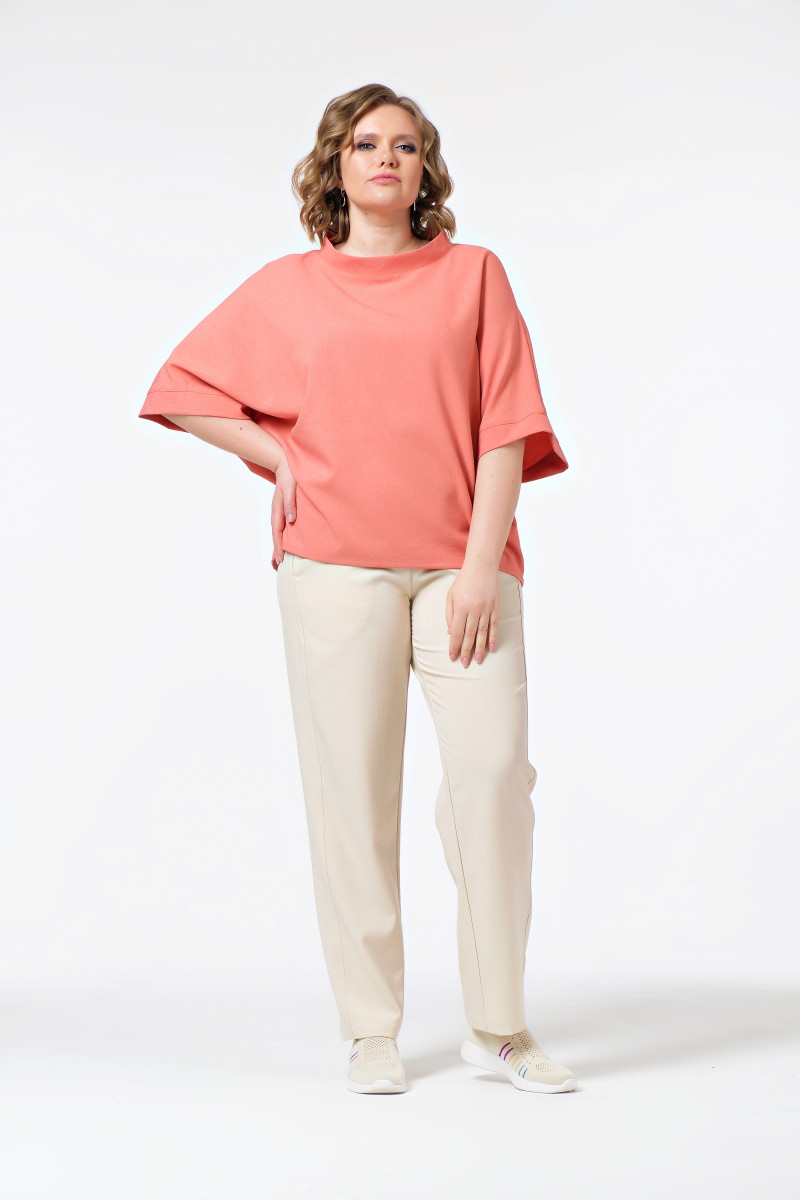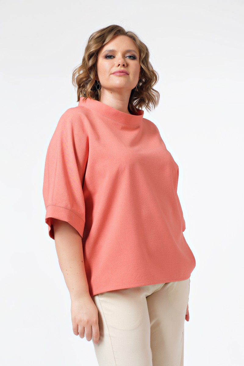 Блузка женская свободного силуэта.Рукава 3/4 цельнокроеные с притачной манжетой. Воротник — стойка. Низ изделия фигурный.