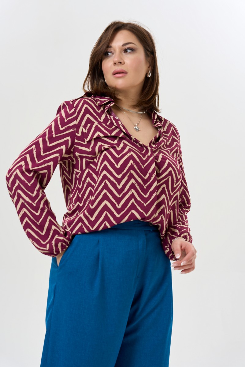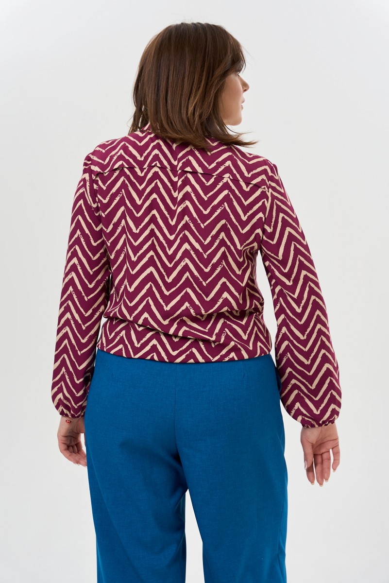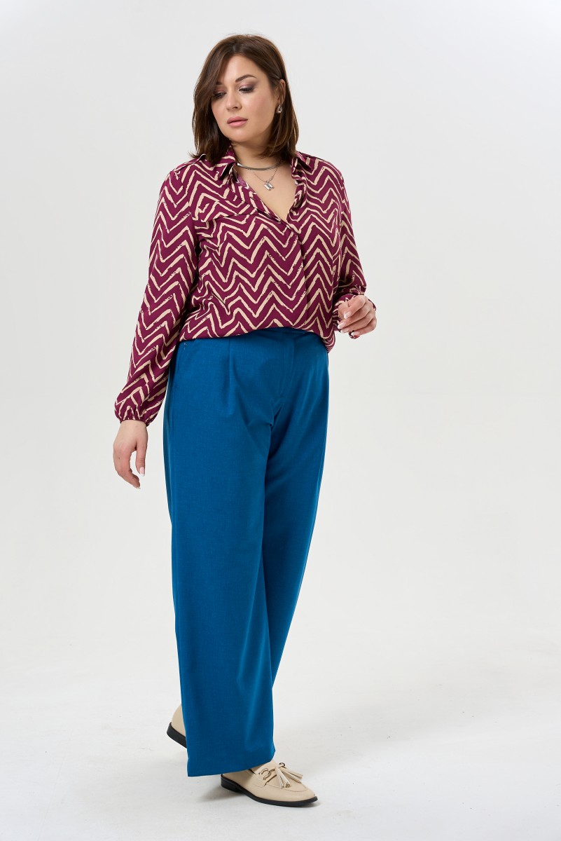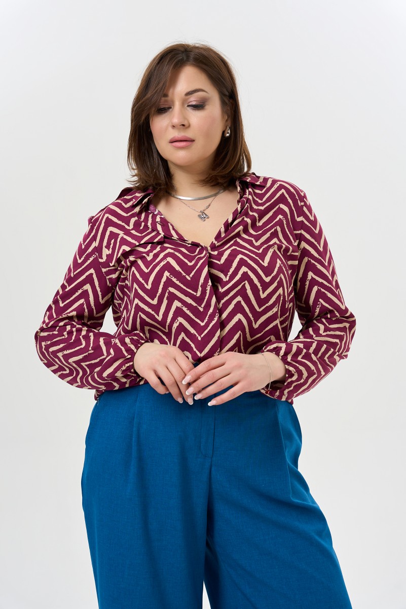 Блузка женская прямого силуэта. По переду: отлетные кокетки грудовые вытачки супатная застежка на петли и пуговицы на правой части переда клапан.