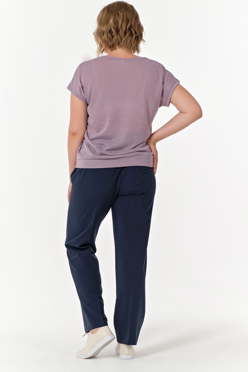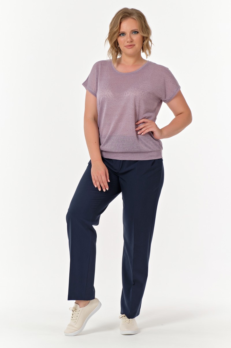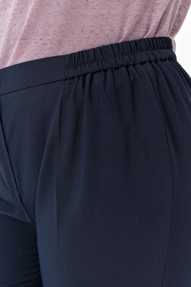 Брюки женские повседневные/ со средней посадкой/ с заутюженными сгибами (стрелками)/ на притачном прямом поясе/ с резиной вставленой по бокам (от вытачек по спинке и до стрелок по переду)/ концы пояса застёгиваются на обмётанную петлю и пуговицу. Передние