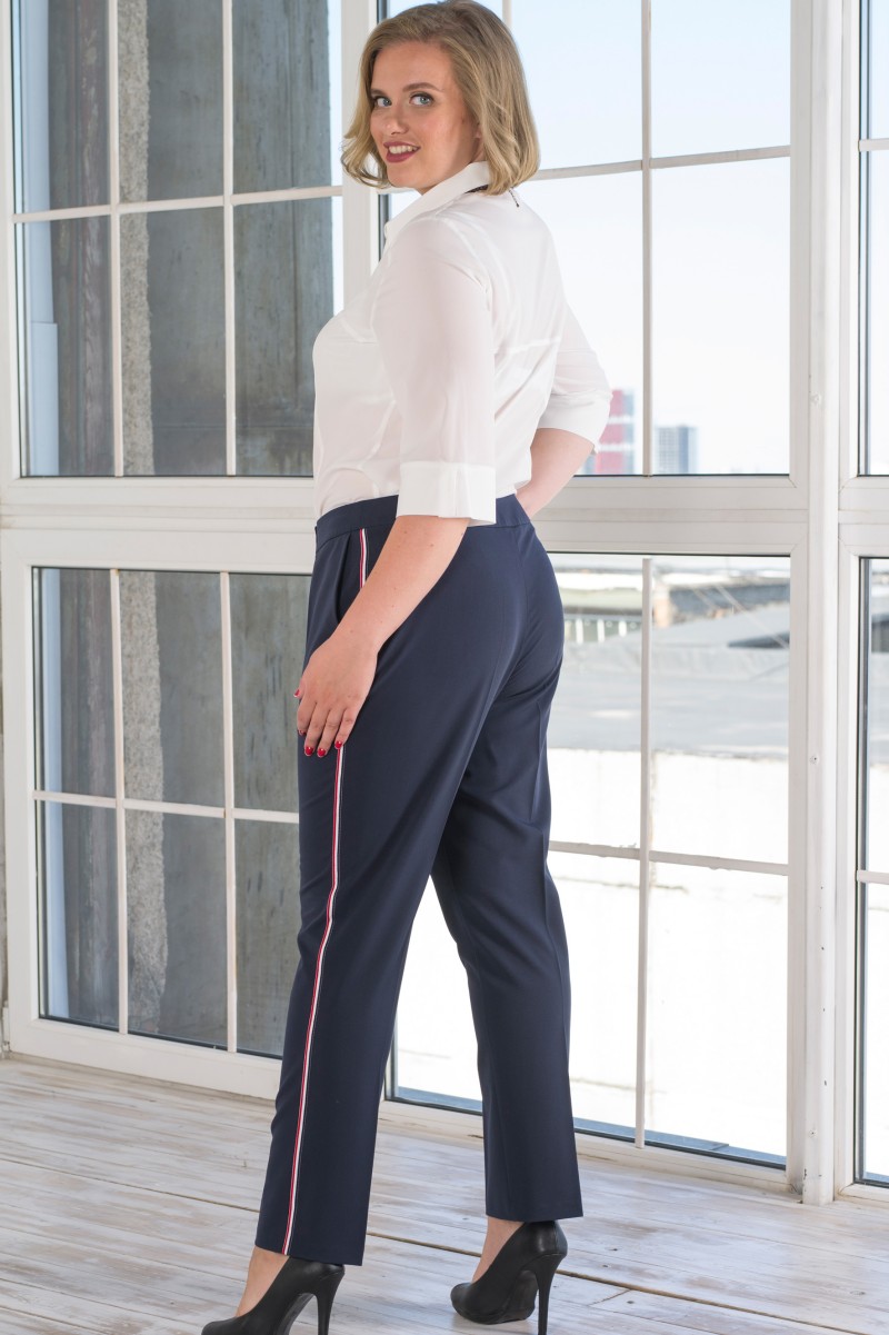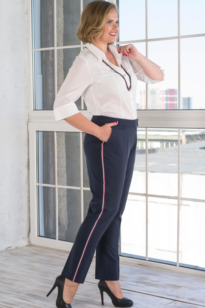 Брюки женские повседневные со средней посадкой прямые по всей длине с заутюженными сгибами (стрелками) на притачном фигурном поясе концы которого застёгиваются на обмётанную петлю и пуговицу./Передние половины брюк с застежкой по типу «гульфик» в сред