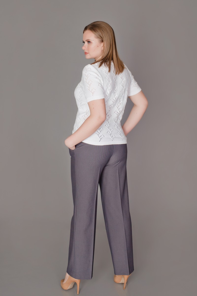 Джемпер женский ажурной вязки (веточки) прямого силуэта. Горловина круглая обработана бейкой. Рукав втачной короткий.