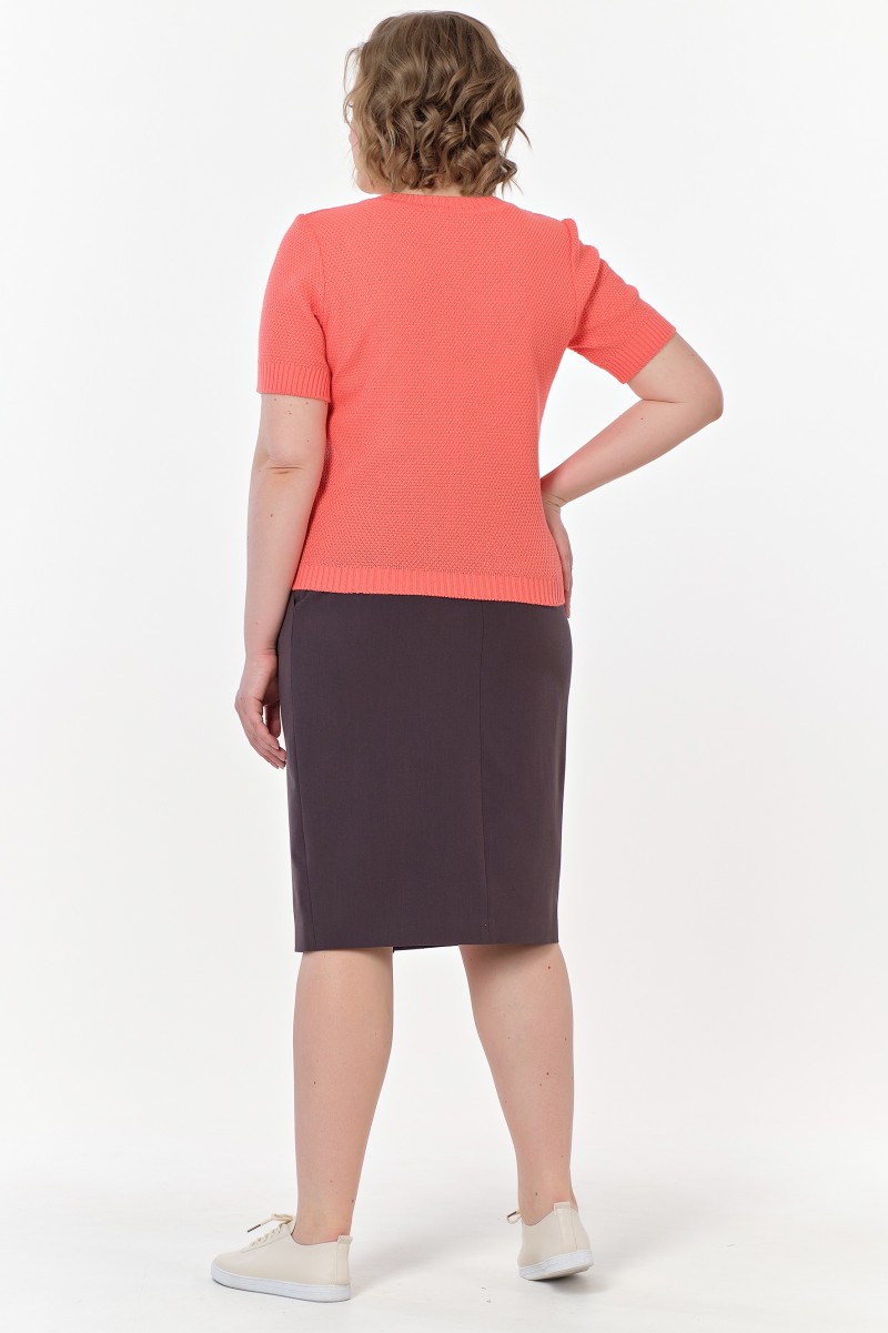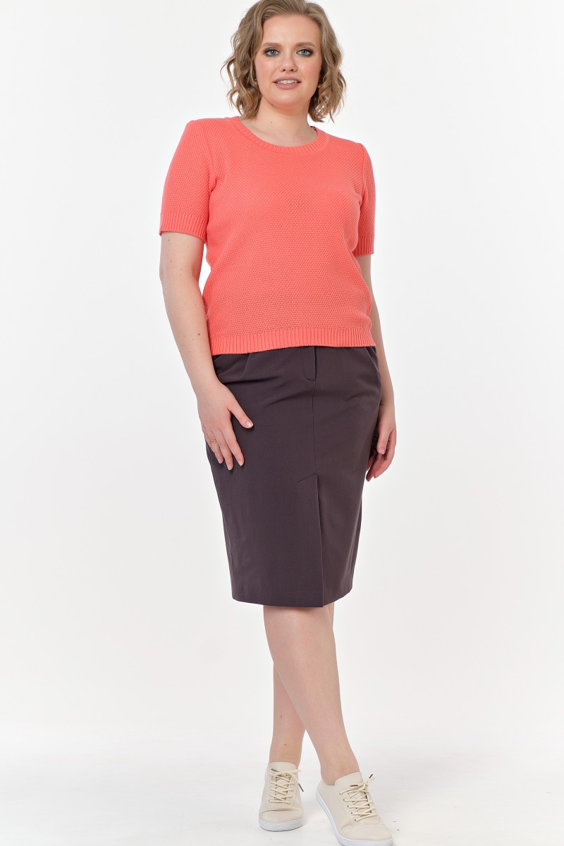 Джемпер женский вязанный (переплетение: рис ) прямого силуэта. Горловина круглая обработана бейкой. Рукав втачной короткий.