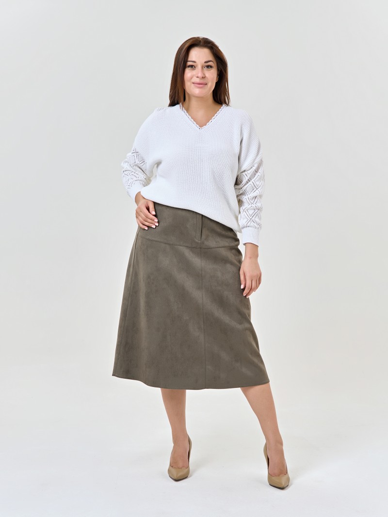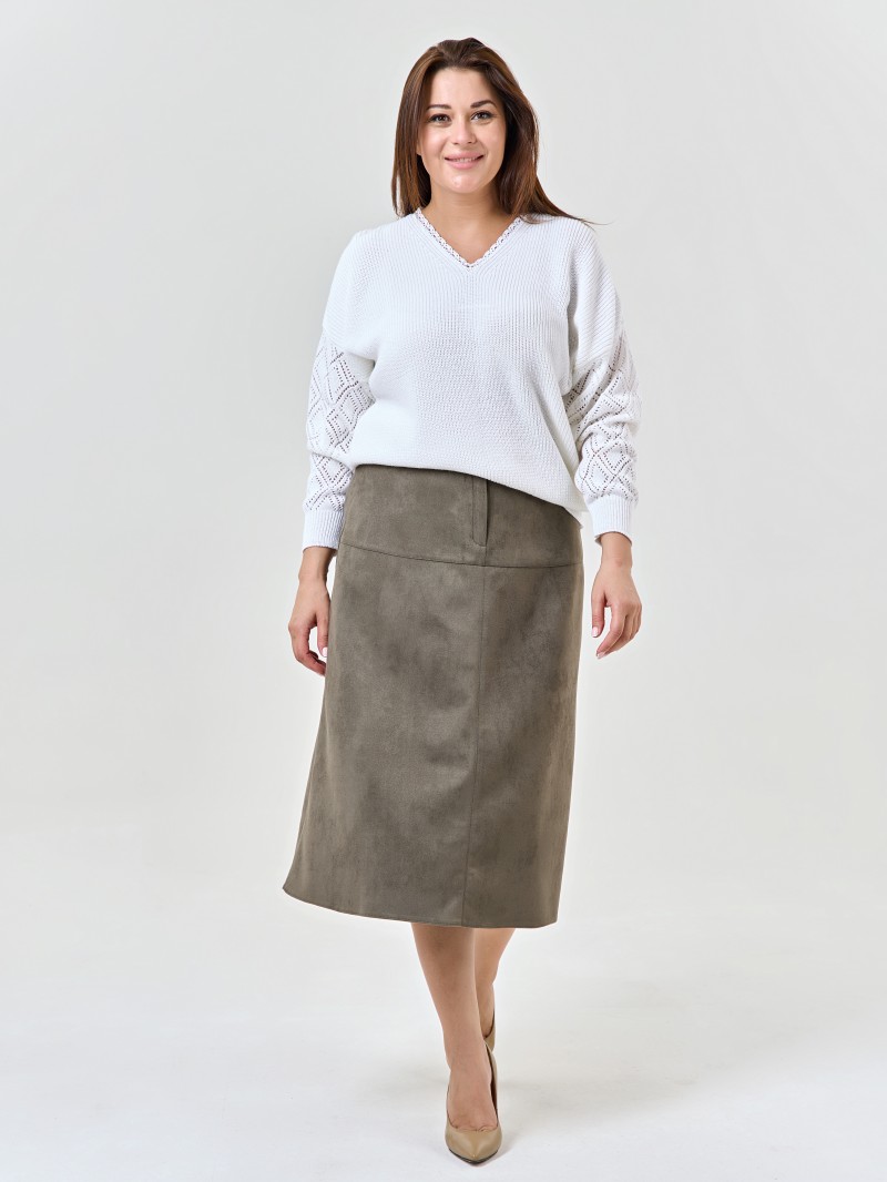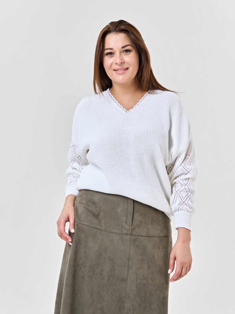 Вязаный женский джемпер из хлопка с V-образным вырезом горловины. Рукава полной длины с красивым ажурным рисунком ромбы.