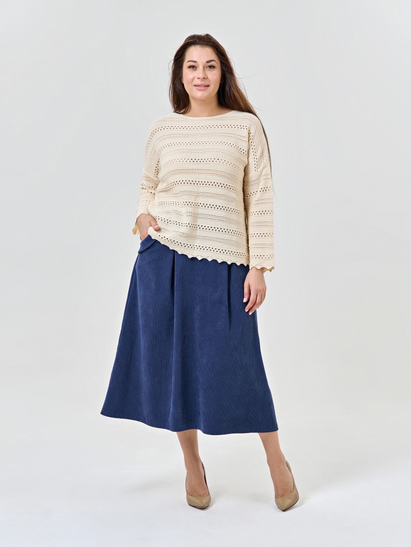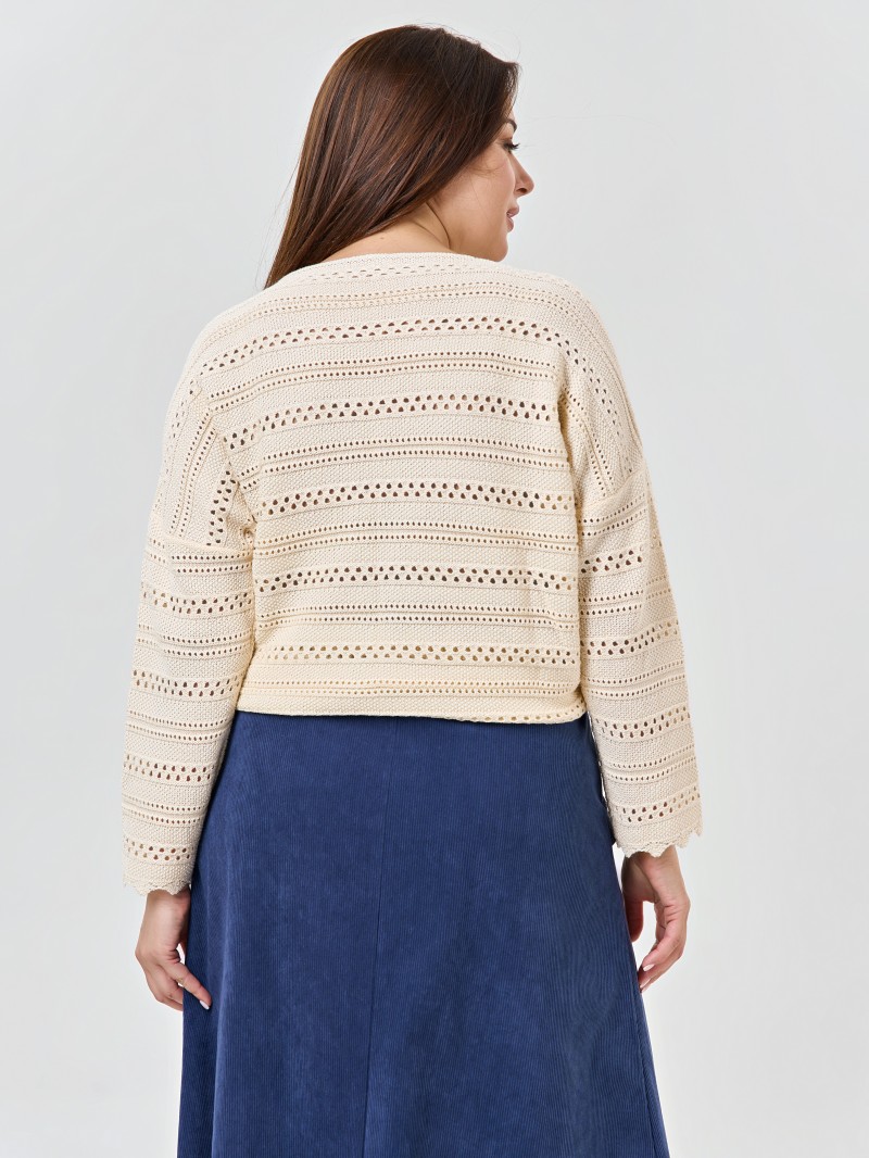 Вязаный ажурный джемпер в натуральном цвете из хлопка.