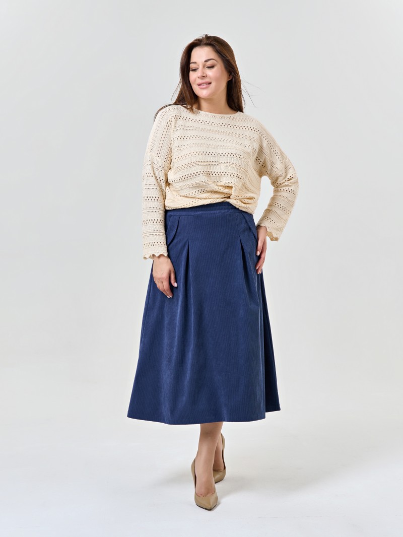Вязаный ажурный джемпер в натуральном цвете из хлопка.Джемпер прямого силуэта с кросивым рисунком и воротом «»лодочкой»»