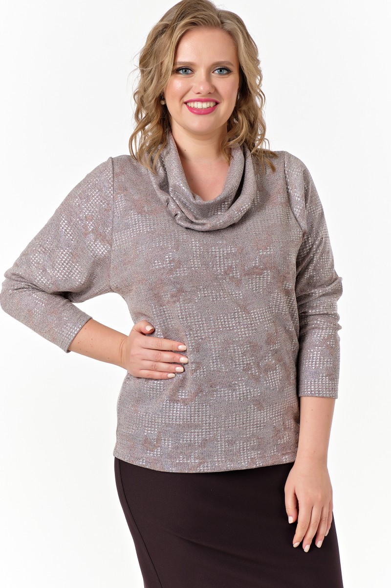 Джемпер женский из трикотажного полотна прямого силуэта романтического стиля. Рукава длинные втачные с углубленной проймой. Воротник «»»»хомут»»»» мягко драпирующийся на горловине переда.
