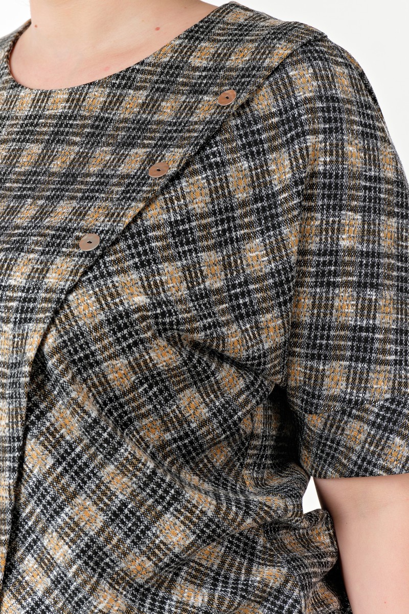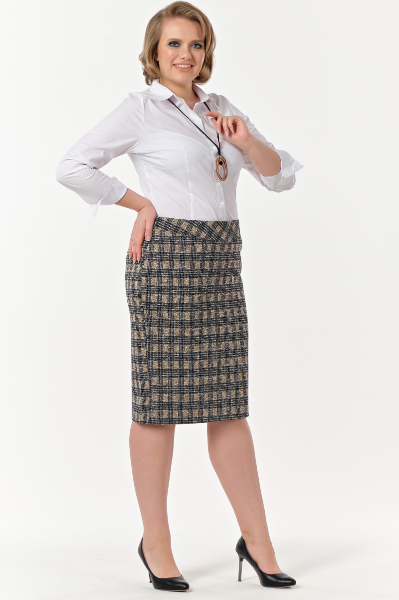 Комплект женский состоящий из блузки и юбки. Блузка женская из трикотажного полотна/ прямого силуэта/ без воротника с круглым вырезом по горловине переда/ горловина обработана обтачкой/ низ блузки присобран притачным поясом. Перед состоит из двух деталей/