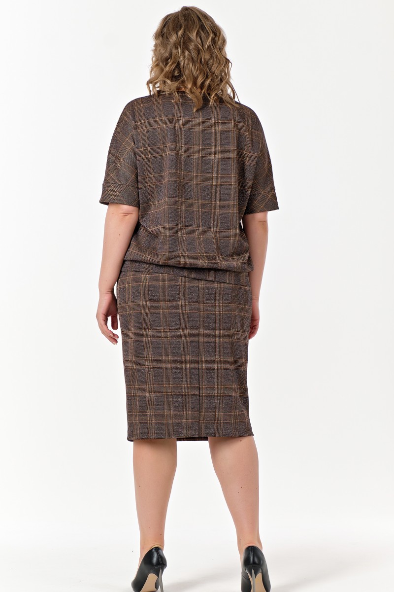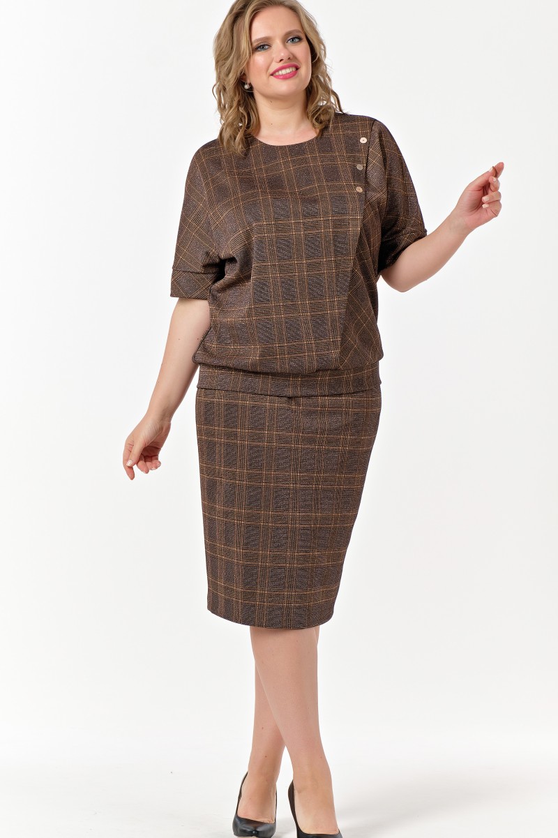 Комплект женский состоящий из блузки и юбки. Блузка женская из трикотажного полотна/ прямого силуэта/ без воротника с круглым вырезом по горловине переда/ горловина обработана обтачкой/ низ блузки присобран притачным поясом. Перед состоит из двух деталей/