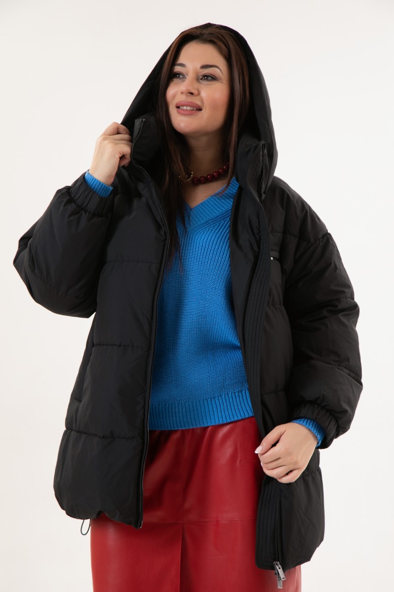 Женский пуховик прямого силуэта с отстегивающимся капюшоном. Основная застежка на молнии. На полочках расположены вертикальные прорезные карманы. Рукава на резинке. Пуховик удлинен по спинке. Наполнитель биопух.