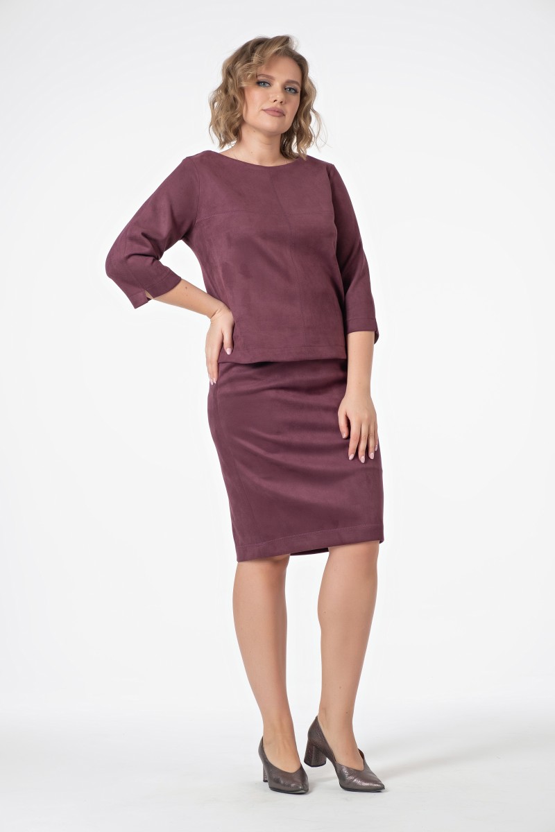 Юбка длиной ниже колена слегка зауженная к низу. В подгибку верхнего края юбки вложена широкая резина создающая комфортное прилегание по линии талии. На спинке средний шов и талиевые вытачки. Посадка средняя. Стиль классический.