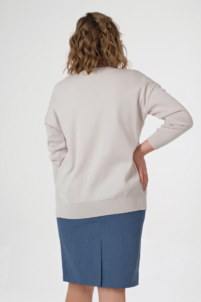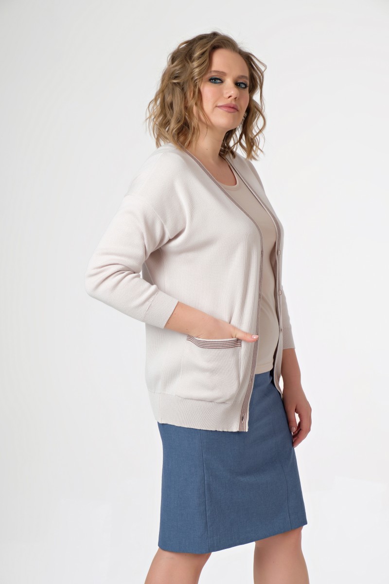 Жакет женский вязанный прямого силуэта длиной по линии бедер с V-образной горловиной застежка центральная обработанная притачной бейкой на 5 пуговиц и выметанных петель перед с накладными карманами рукава длинные цельнокроеные с членением выше л
