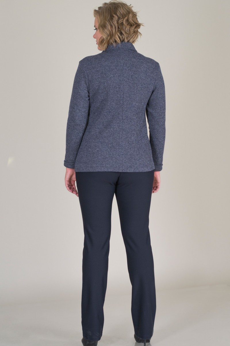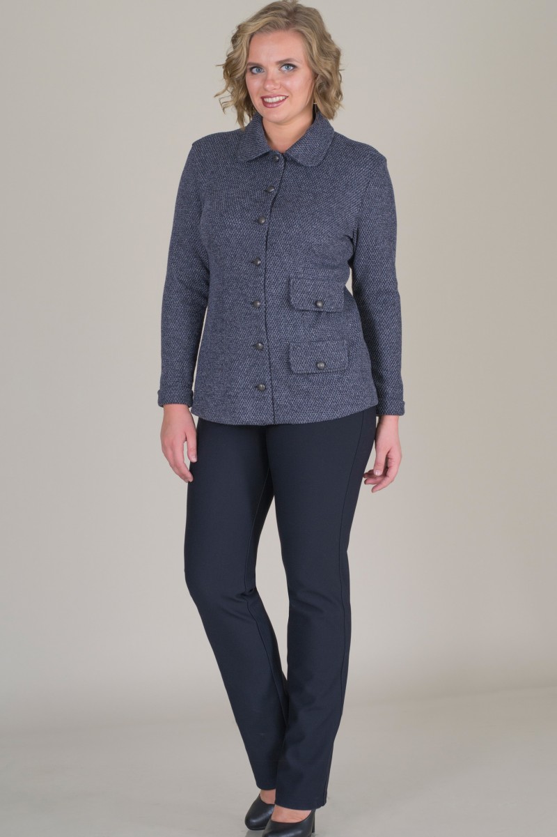 Жакет женский классического стиля из трикотажного полотна полуприлегающего силуэта длиной ниже линии бедер. Рукава втачные длинные с отложными манжетами. Горловина круглая воротник отложной с закругленными концами застежка закрытая центральная на 7 пуг