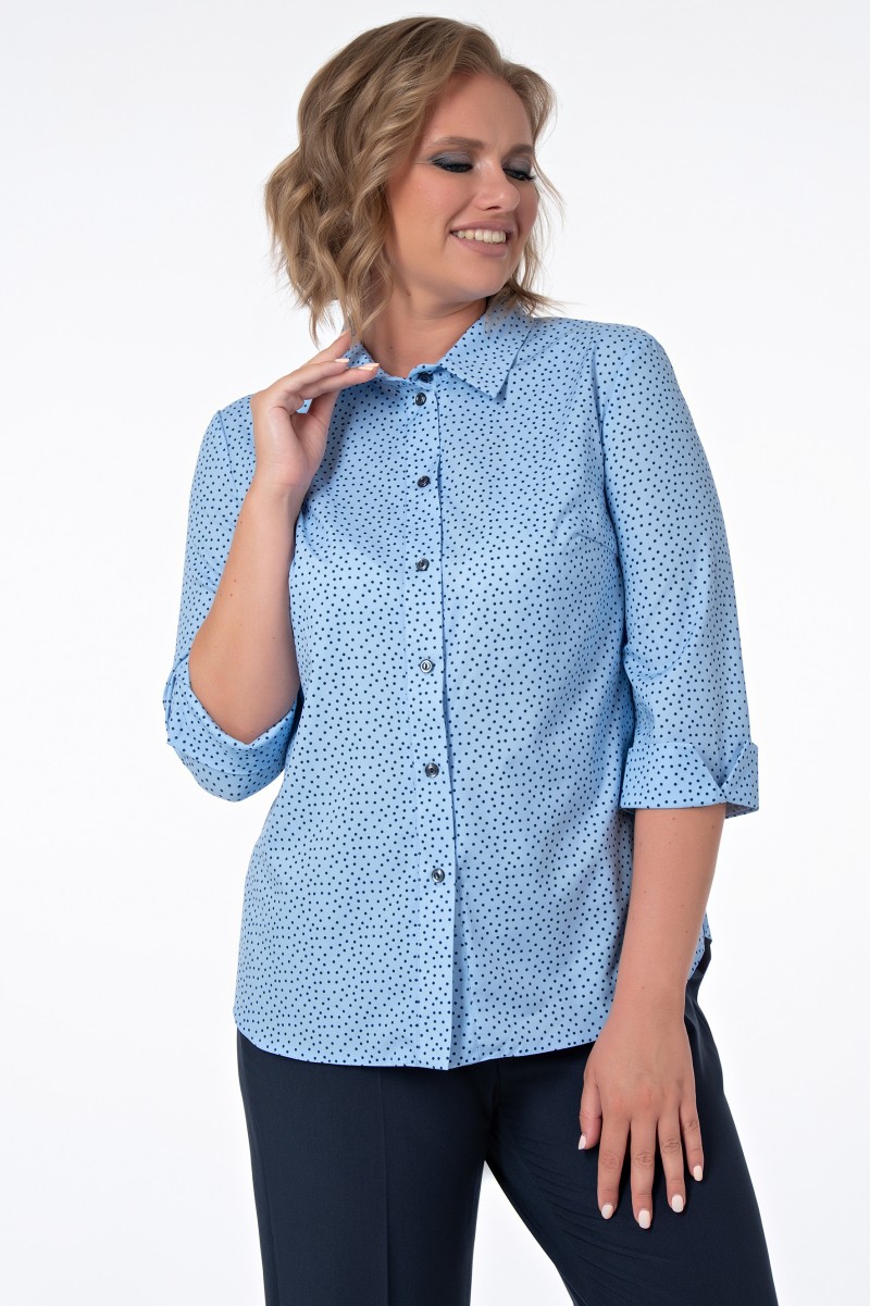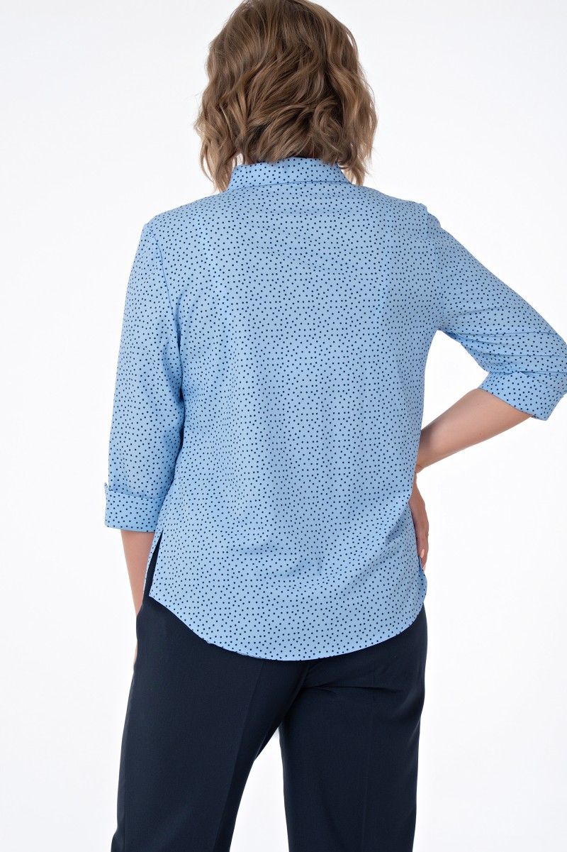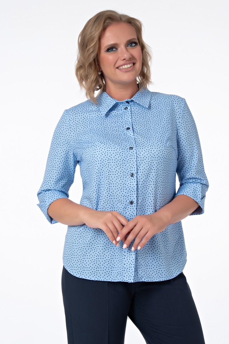 Блузка классического стиля полуприлегающего силуэта с центральной застежкой на 6 пуговиц на планке. Рукава втачные длиной 3/4 с притачными отгибающимися наверх манжетами. Воротник отложной на притачной стойке. Рубашка отлично сочетается с классически