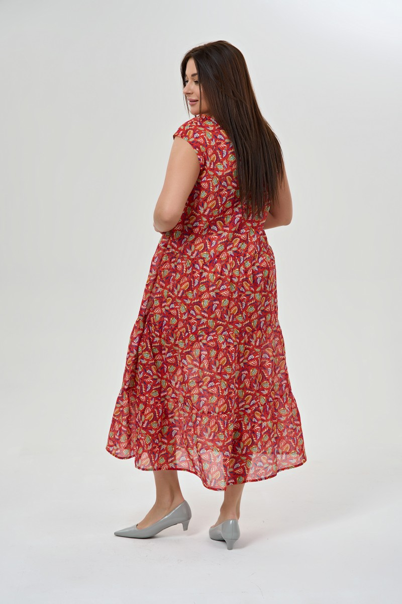 Это платье воплощает философию медленной моды – никуда не спешить наслаждаться каждым моментом летнего дня. Свободный силуэт не сковывает движения позволяя чувствовать себя естественно в любой ситуации. Три яруса создают красивую игру объемов – каждый слой мягко струится добавляя образу романтической легкости.Широкие рукава в стиле кимоно придают модели особый шарм и этническую нотку. Круглый вырез горловины подчеркивает изящество шеи а удобная посадка делает платье универсальным выбором для разных типов фигуры. Натуральные ткани обеспечивают комфорт даже в самые жаркие дни.Модель идеально вписывается в летний гардероб современной женщины. Подойдет для прогулок по городу встреч с друзьями в кафе поездок на дачу или путешествий. С сандалиями создает расслабленный casual-образ а с элегантными туфлями трансформируется в наряд для романтического ужина. Платье легко упаковывается в чемодан и практически не мнется что делает его незаменимым спутником в отпуске.