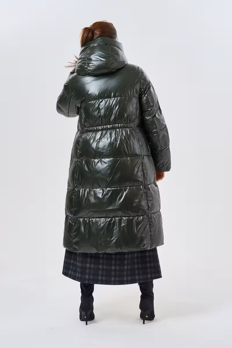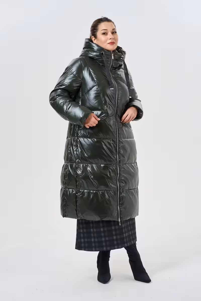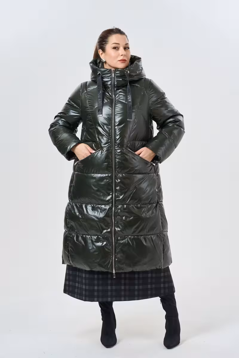 Этот длинный пуховик с капюшоном станет верным спутником в холодное время года. А-силуэт визуально балансирует фигуру а длина до середины голени обеспечивает максимальную защиту от непогоды. Воротник-стойка надежно закрывает шею от ветра а объемный капюшон с регулируемой затяжкой создает дополнительный барьер от снега и дождя.Глубокий зеленый цвет освежает зимний гардероб и прекрасно сочетается с черными сапогами и темными тонами. Молния по всей длине позволяет легко надевать и снимать пуховик а боковые карманы на молнии сохранят важные мелочи в безопасности.Наполнитель из биопуха обеспечивает отличную теплоизоляцию без лишнего веса. Эластичные завершения рукавов плотно прилегают к запястьям не допуская проникновения холодного воздуха. Регулируемая кулиска по спинке позволяет корректировать силуэт.Такая модель идеально подходит для городских прогулок поездок за город утренних пробежек в парке. Сочетается с джинсами леггинсами теплыми платьями и высокими сапогами.