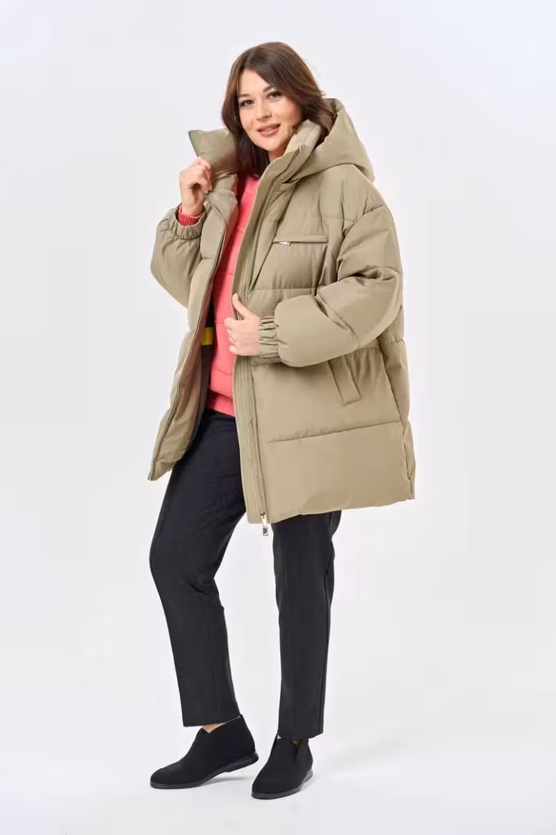 Прямой силуэт этого пуховика работает как идеальная база для зимнего гардероба. Удлиненная спинка создает элегантные пропорции а биопух надежно сохраняет тепло даже в сильные морозы. Капюшон отстегивается одним движением – так можно менять настроение образа от спортивного до более формального.Вертикальные карманы расположены именно там где руки находят их интуитивно. Рукава на резинке плотно прилегают к запястьям не пропуская холодный воздух. Застежка-молния скрывается под планкой создавая чистые линии силуэта.Цвет хаки универсален как черный но гораздо интереснее. Этот оттенок сочетается с джинсами для прогулок по городу с брюками прямого силуэта для деловых встреч с зауженными легинсами для активного отдыха. Пуховик одинаково уместен в офисе на прогулке или в путешествии.Биопух как наполнитель обеспечивает легкость и объемную теплоизоляцию. Такая верхняя одежда служит годами сохраняя первоначальную форму и свойства.