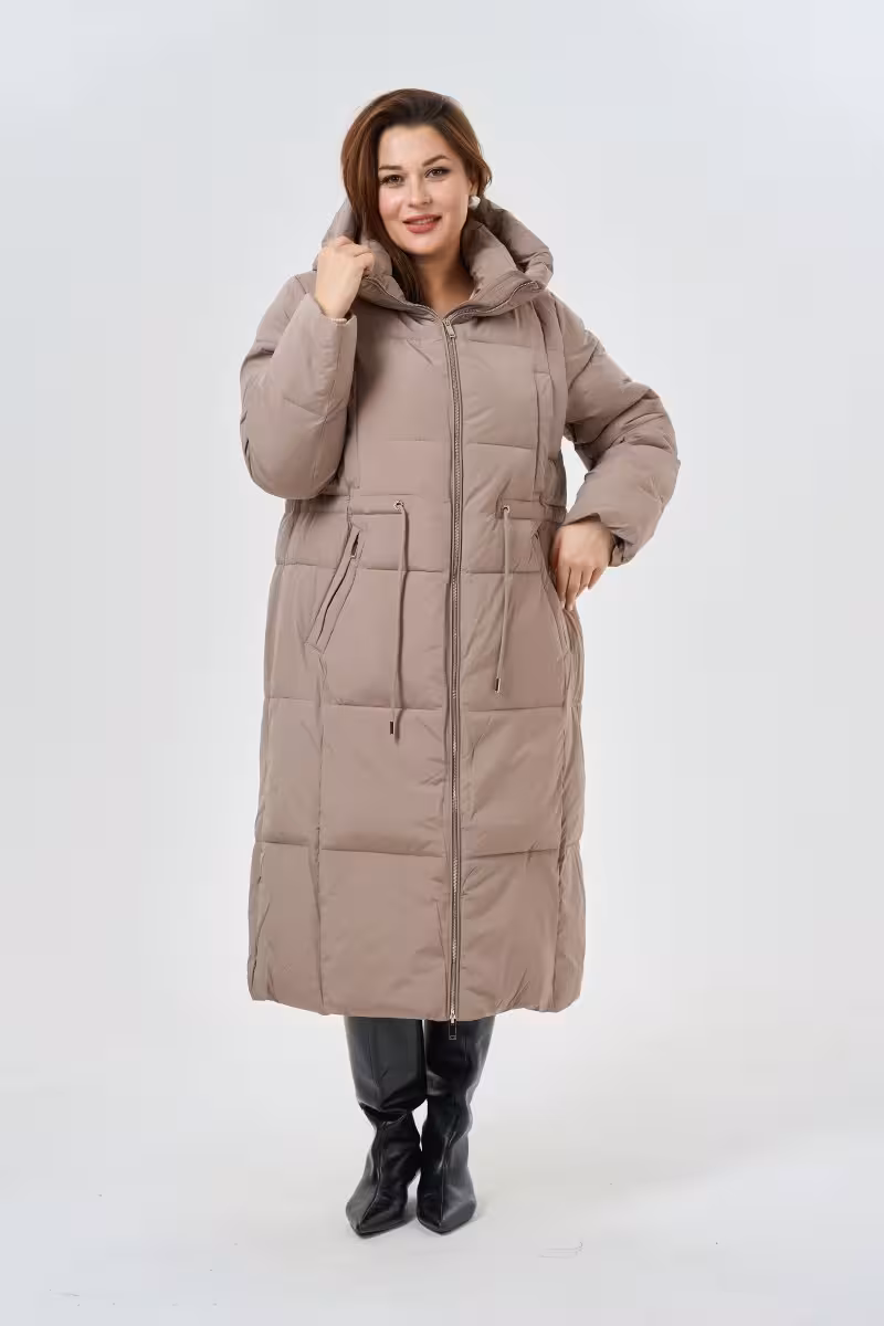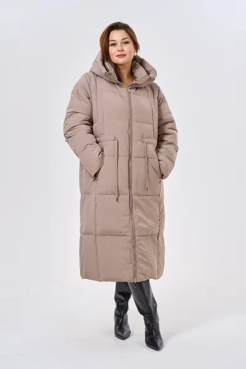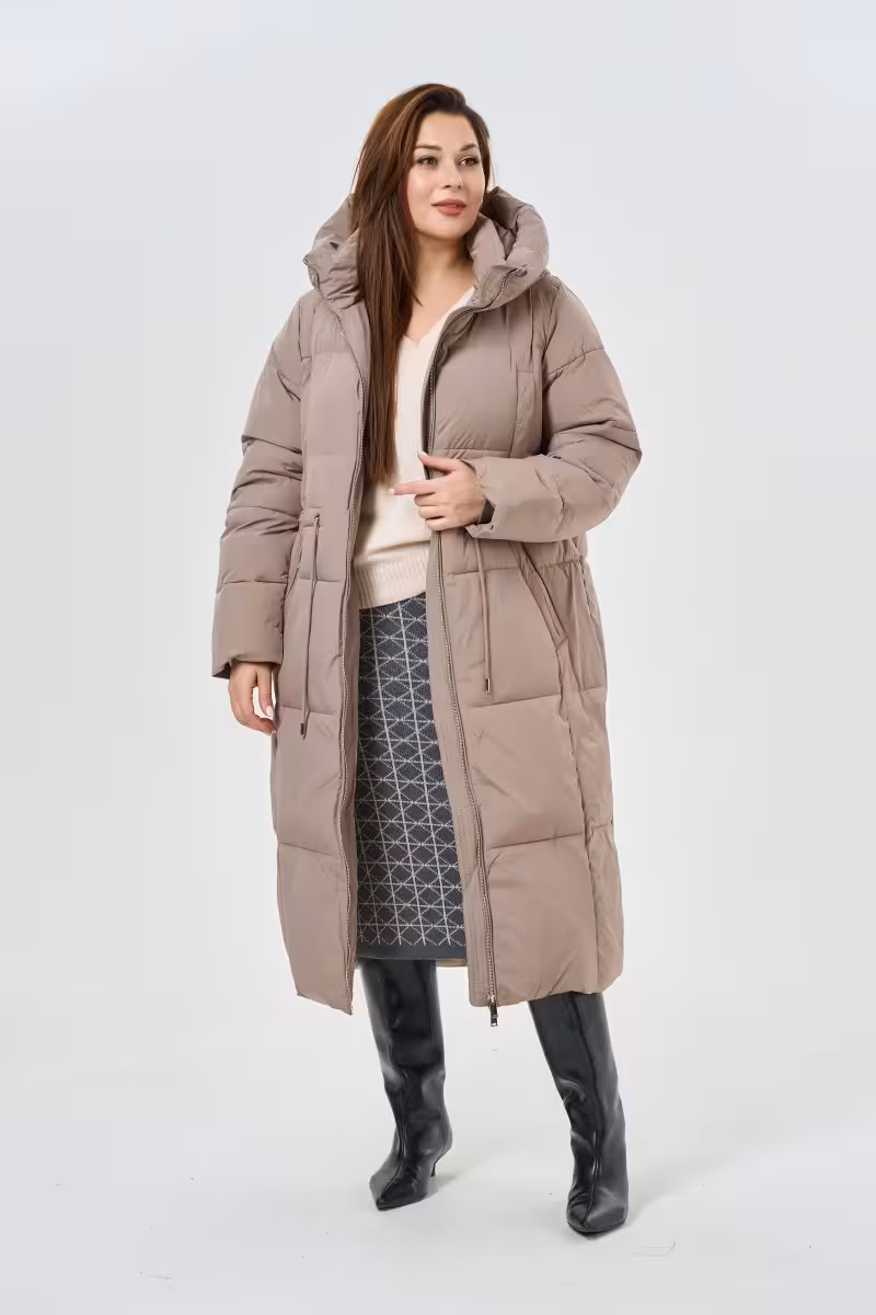 Длинный пуховик прямого силуэта в универсальном бежевом цвете станет основой зимнего гардероба для тех кто ценит комфорт без компромиссов по стилю. Высокий воротник-стойка и объемный капюшон надежно защищают от ветра и снега создавая ощущение теплого кокона даже в самую непогоду.Регулируемый пояс с кулиской позволяет менять образ от свободного oversize до подчеркнуто женственного силуэта. Практичные карманы на молнии надежно сохранят телефон и ключи во время долгих зимних прогулок или путешествий.Качественный биопух обеспечивает максимальное тепло при минимальном весе. Плотные резинки на рукавах не пропускают холодный воздух сохраняя комфортную температуру тела.Этот пуховик легко сочетается с деловыми прямыми брюками для офисных будней с зауженными джинсами для casual-образов или со свободными брюками-бананами для расслабленных выходных. Нейтральный бежевый оттенок гармонично дополнит любую цветовую гамму базового гардероба от классических черно-белых сочетаний до ярких акцентных деталей.