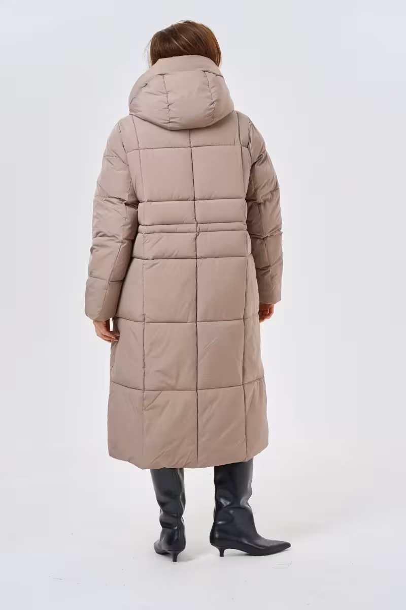 Этот длинный пуховик в благородном бежевом оттенке дарит ощущение уютной защищенности даже в самые суровые дни. Прямой силуэт с регулируемым поясом создает элегантный городской образ который одинаково хорошо смотрится и на деловой встрече и на прогулке по зимнему парку.