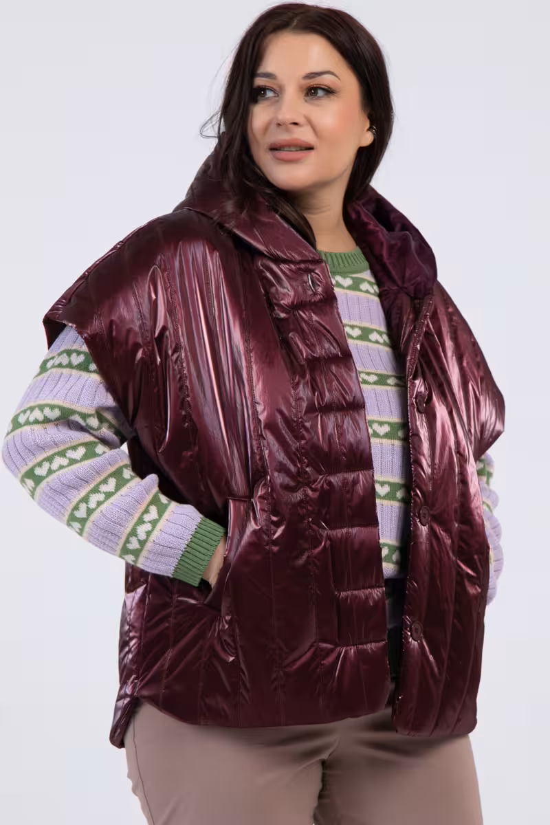 Жилет с капюшоном на теплой подкладке станет центральной деталью вашего гардероба в межсезонье. Свободный крой позволяет экспериментировать с layering-техниками создавая актуальные urban-образы. Короткие рукава в стиле кимоно добавляют азиатских ноток и обеспечивают свободу движений.Объемный капюшон защищает от ветра и создает расслабленный силуэт. Модель прекрасно сочетается с водолазками лонгсливами и легкими свитерами. Практичные карманы сохранят тепло рук и вместят необходимые мелочи.Скрытая застежка создает минималистичный вид спереди подчеркивая современный дизайн. Качественная подкладка обеспечивает дополнительное тепло и комфорт при носке.Этот жилет подойдет для прогулок по городу встреч с друзьями или походов в кафе. Он легко адаптируется под casual-лук или создает основу для более structured образа. Универсальность кроя позволяет носить его поверх платьев с джинсами или спортивными брюками.Модель идеально впишется в гардероб любительниц непринужденного стиля которые ценят практичность