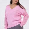 Вязаный женский джемпер из хлопка с V-образным вырезом горловины. Рукава полной длины с красивым ажурным рисунком ромбы.